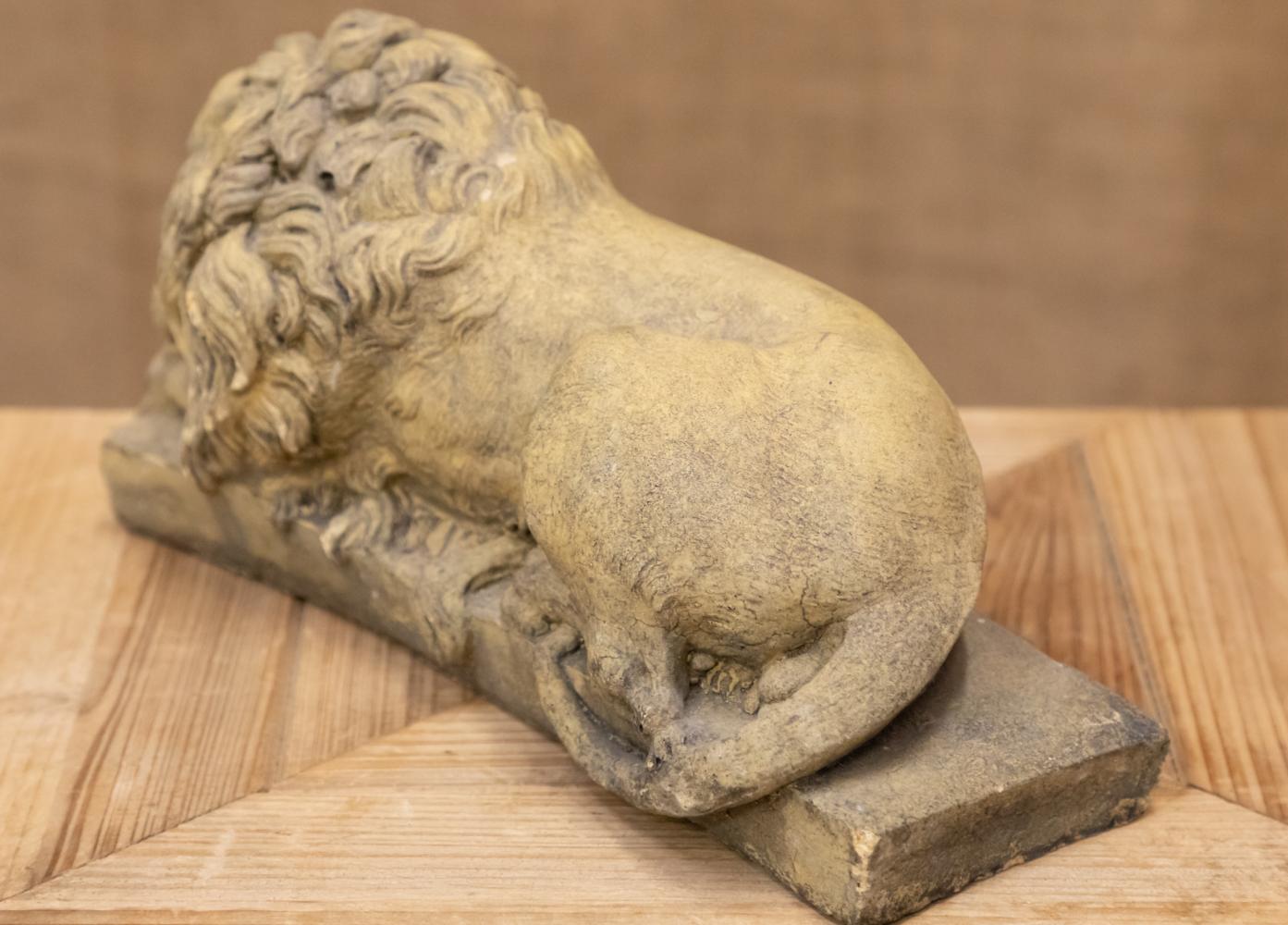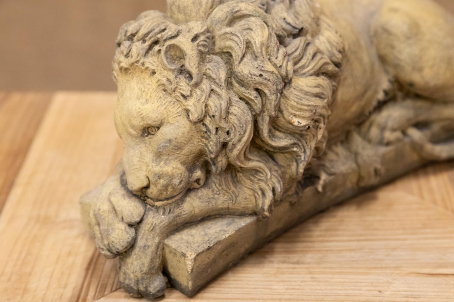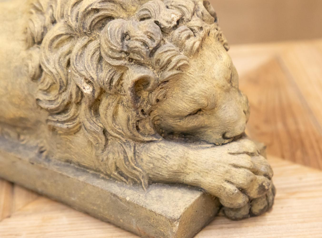 A stunning pair of buff terracotta Canova Lions. Extremely well modelled in fantastic detail. The lions have a few very small scuffs and knocks to the mane. They are unsigned, similar examples can be found by both Coade and Blashfield. They have had a coat of varnish to the underside at some point in the 20th century.