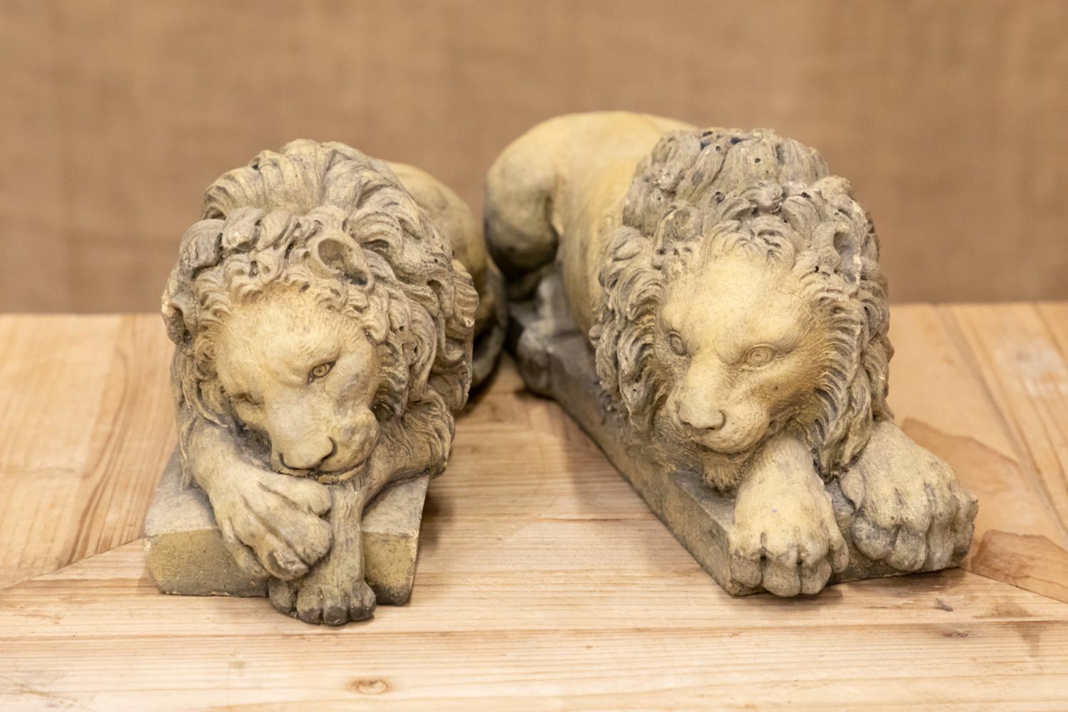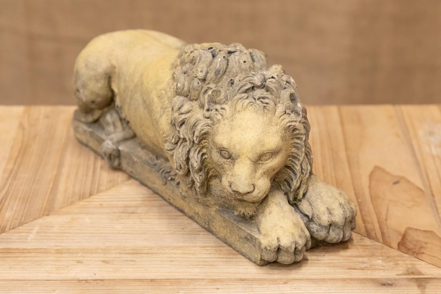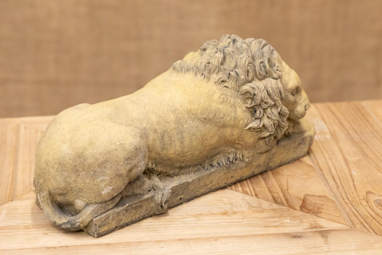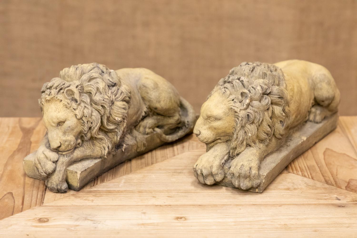 A stunning pair of buff terracotta Canova Lions. Extremely well modelled in fantastic detail. The lions have a few very small scuffs and knocks to the mane. They are unsigned, similar examples can be found by both Coade and Blashfield. They have had a coat of varnish to the underside at some point in the 20th century.