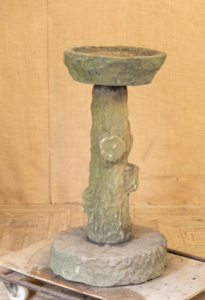 A fantastic late 19th century carved York Stone birdbath in the Foix Bois style carved to imitate branches and wood.