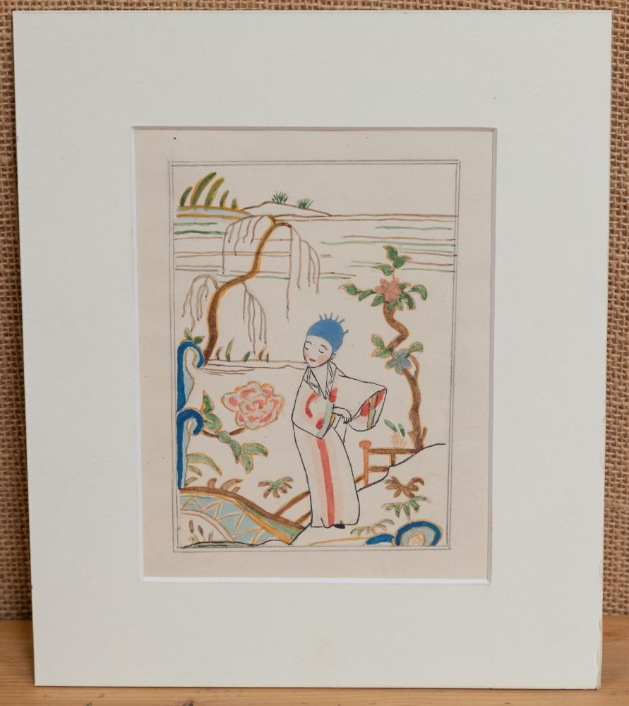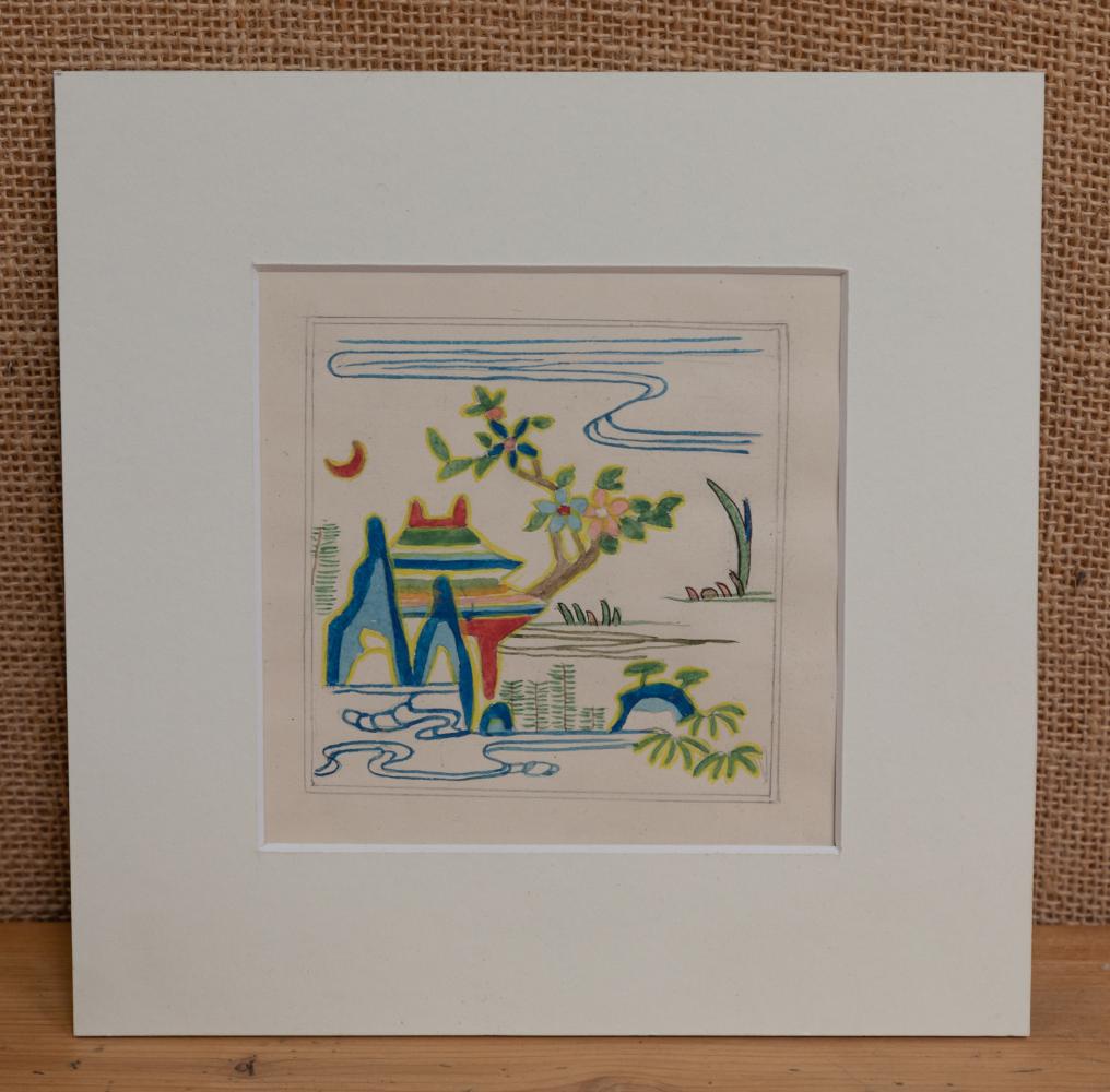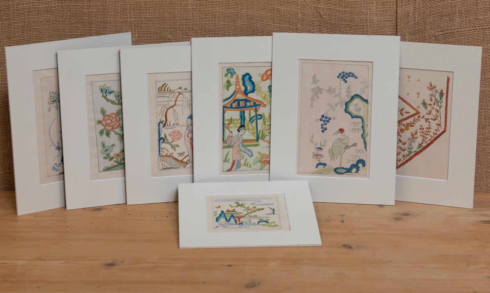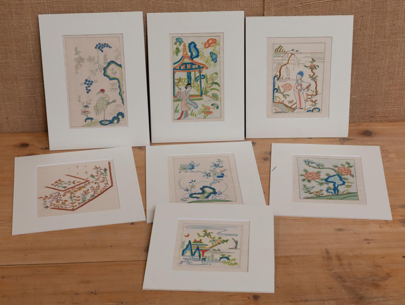 A lovely collection of seven diminutive watercolours of oriental scenes, mounted and unframed.