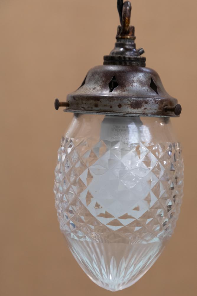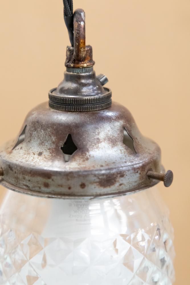 A beautiful cut glass pendant light with the original tin gallery. Fully rewired and PAT tested.