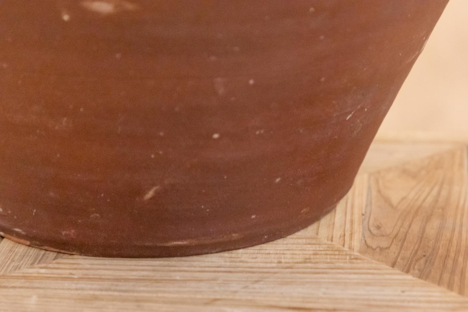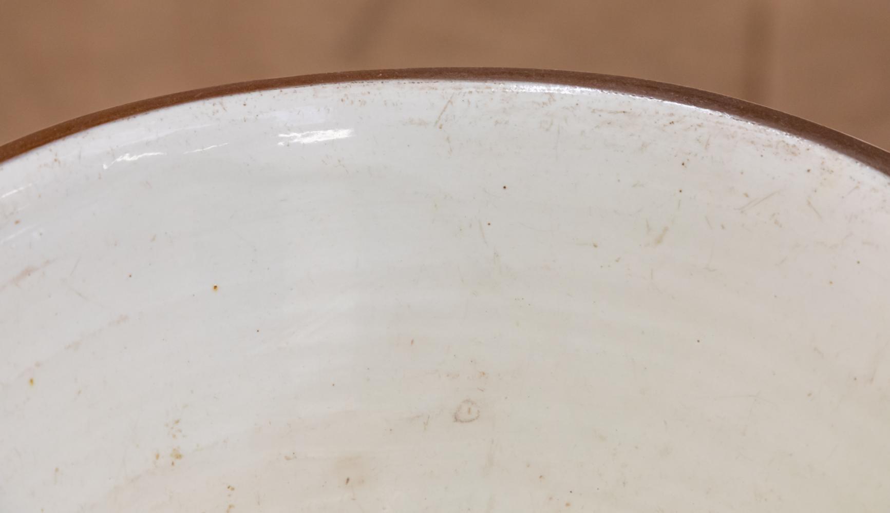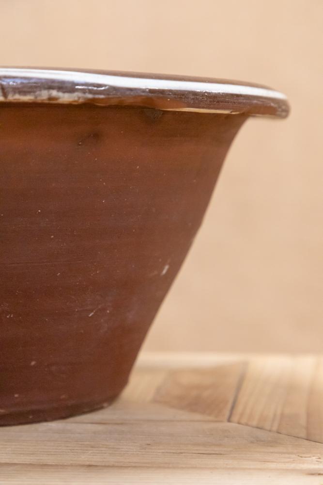 A lovely cream glazed red terracotta dairy bowl or pancheon.