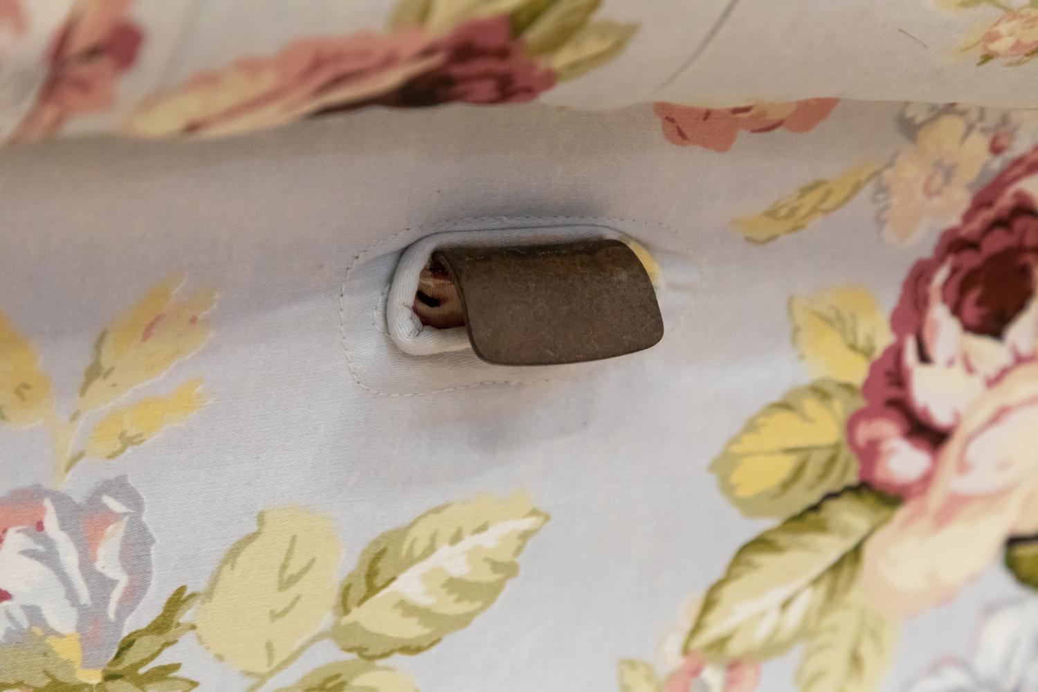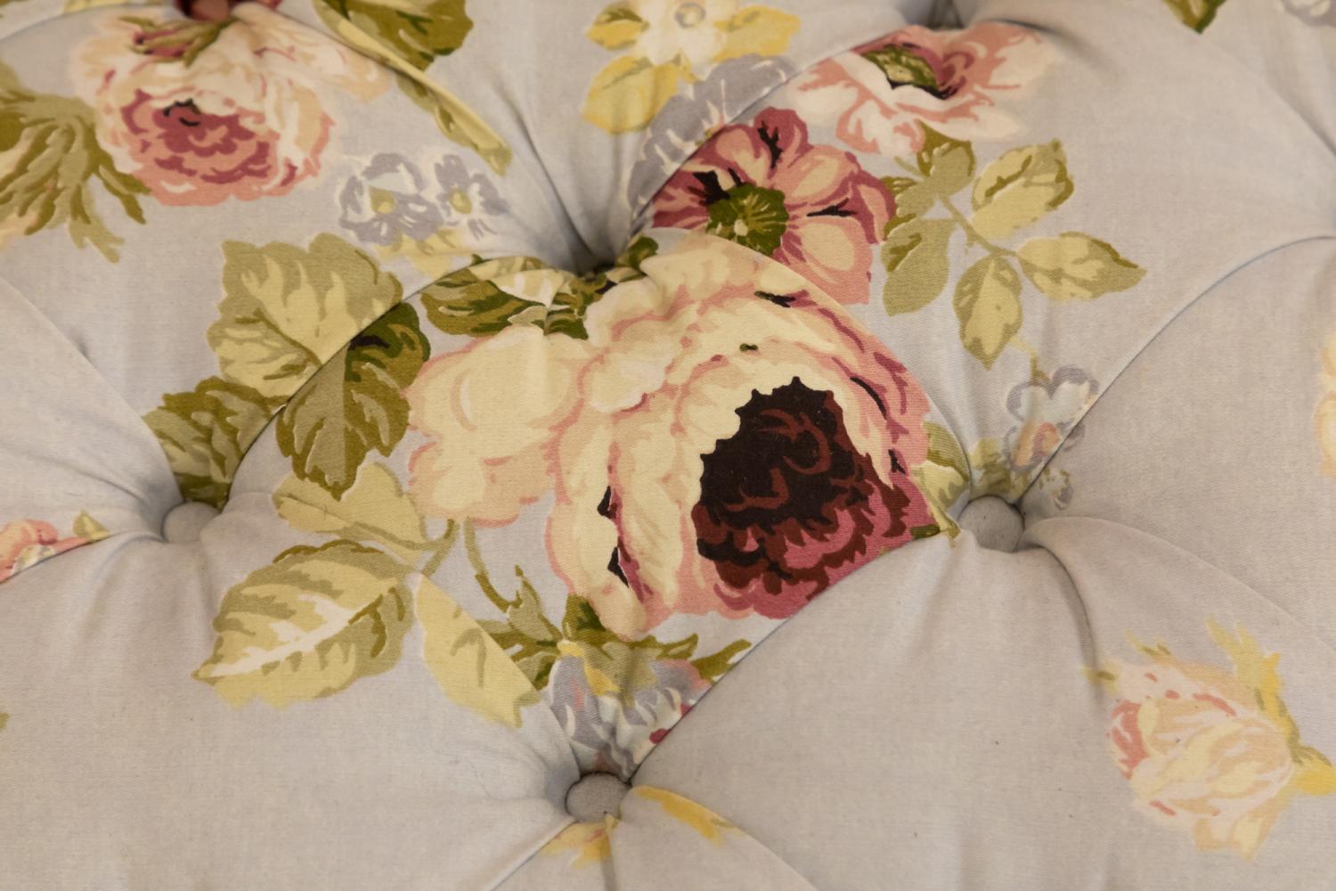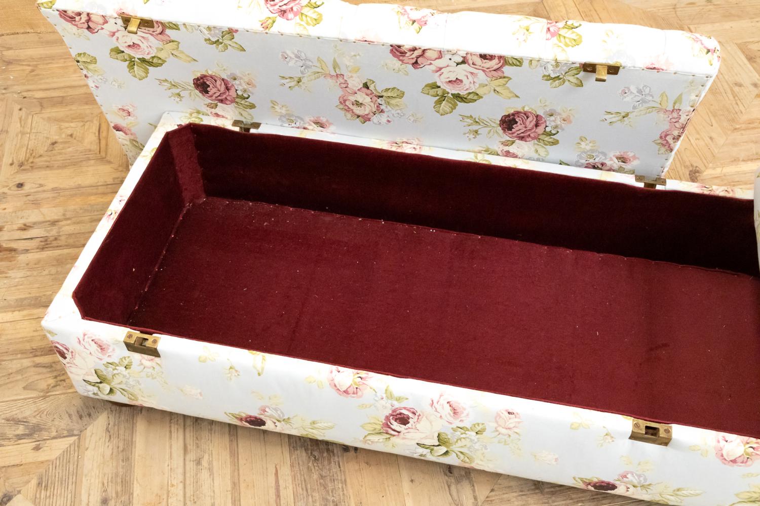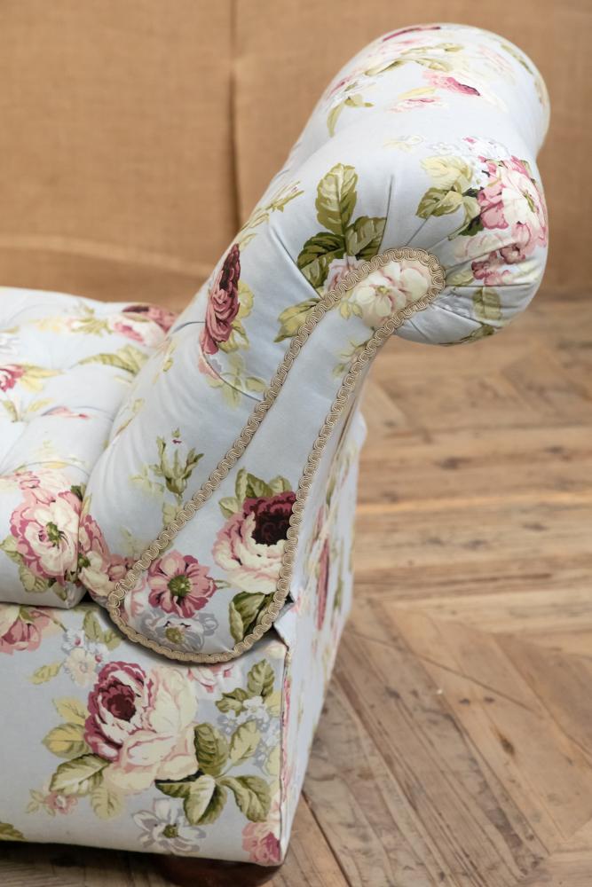 A beautiful 19th century drop arm day bed, upholstered in a stunning chintz fabric. The base with a removable lid giving storage space inside.