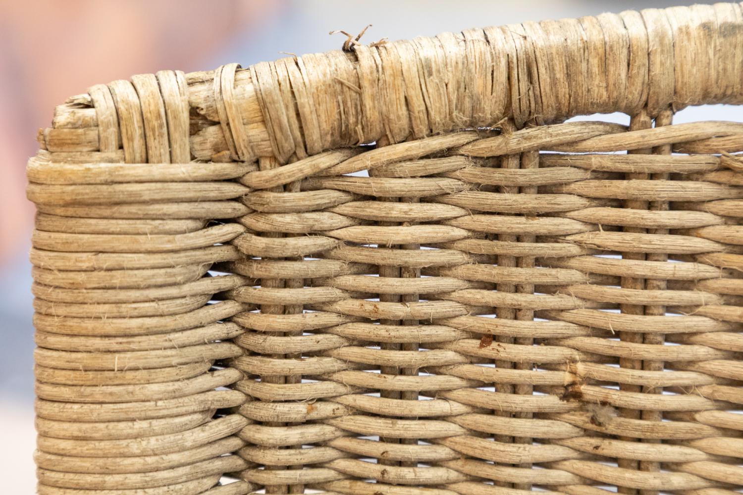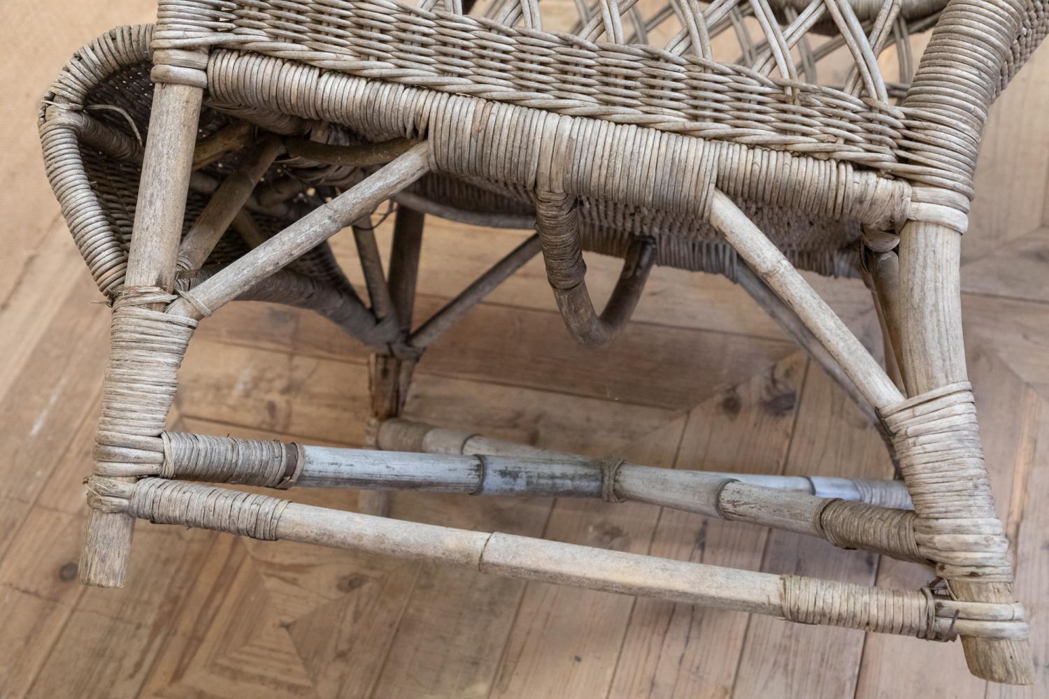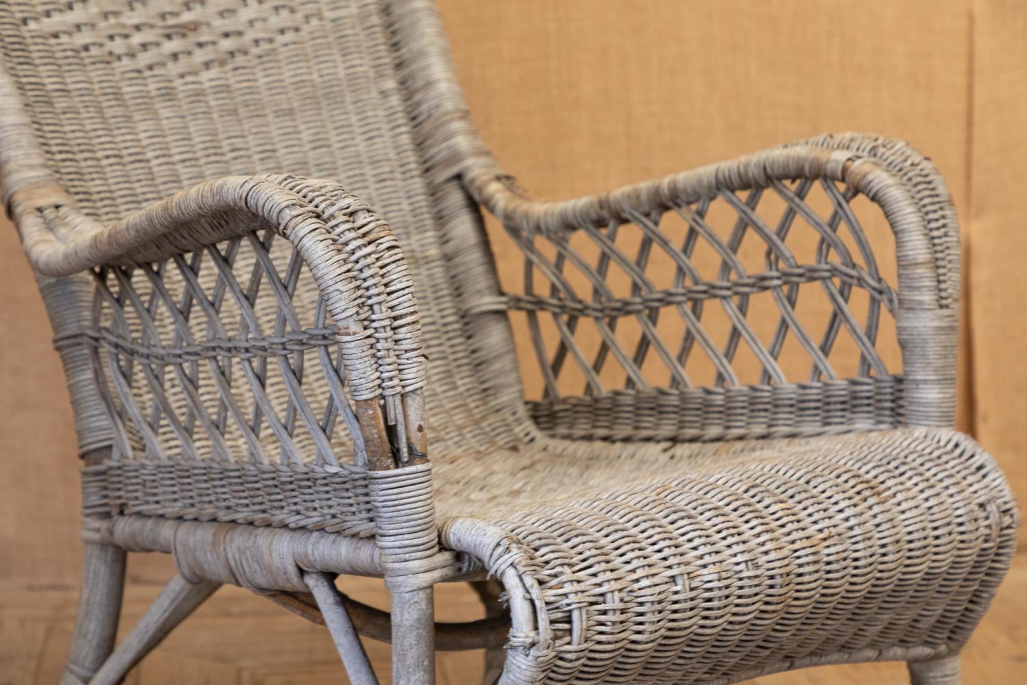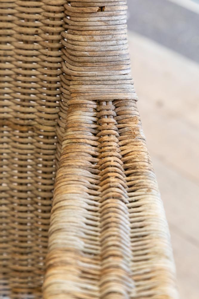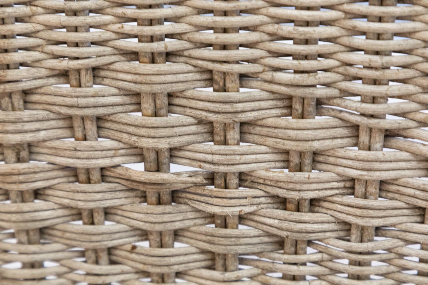 A large and comfortable, English armchair by Dryad of Leicester, known as the Sleepy Hollow model in the original catalogue. This Dryad garden armchair features a diamond pattern woven into the back rest and with an open work design under the arms. Complete with the original oval metal Dryad makers label and a wonderful weathered colour and patina.