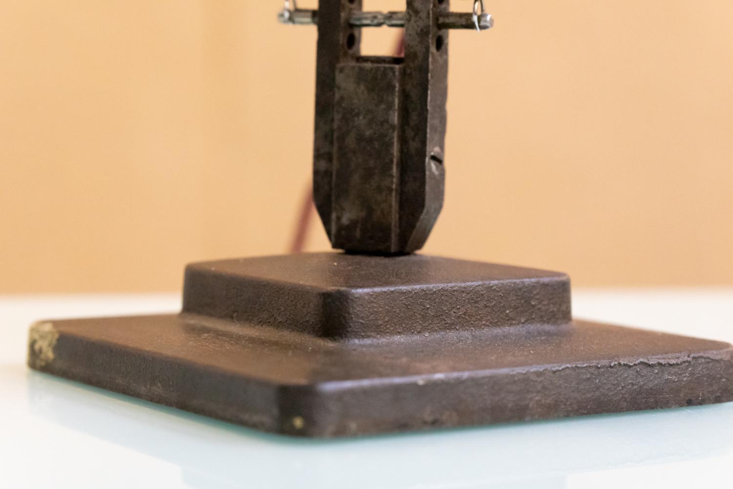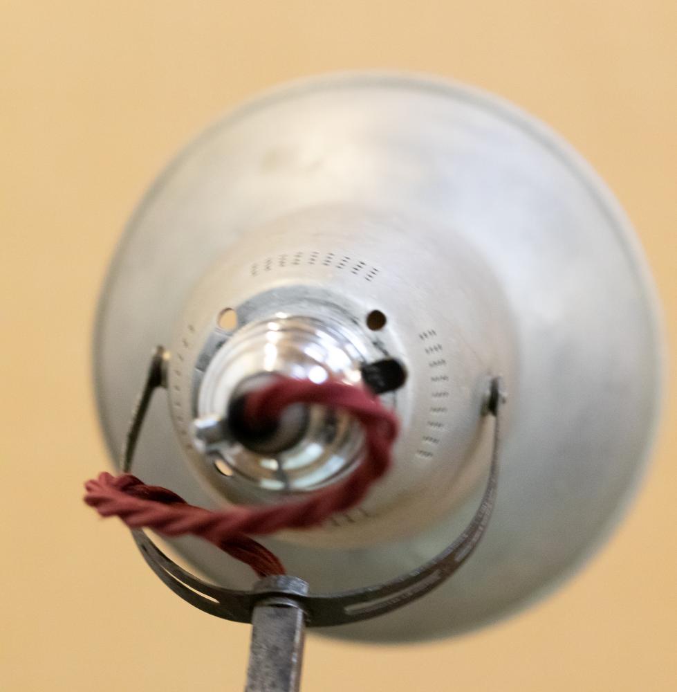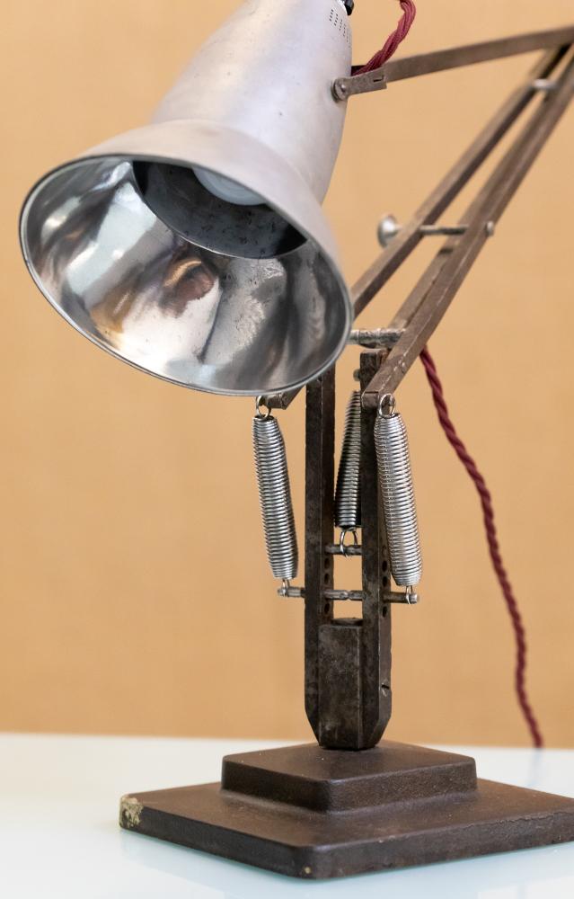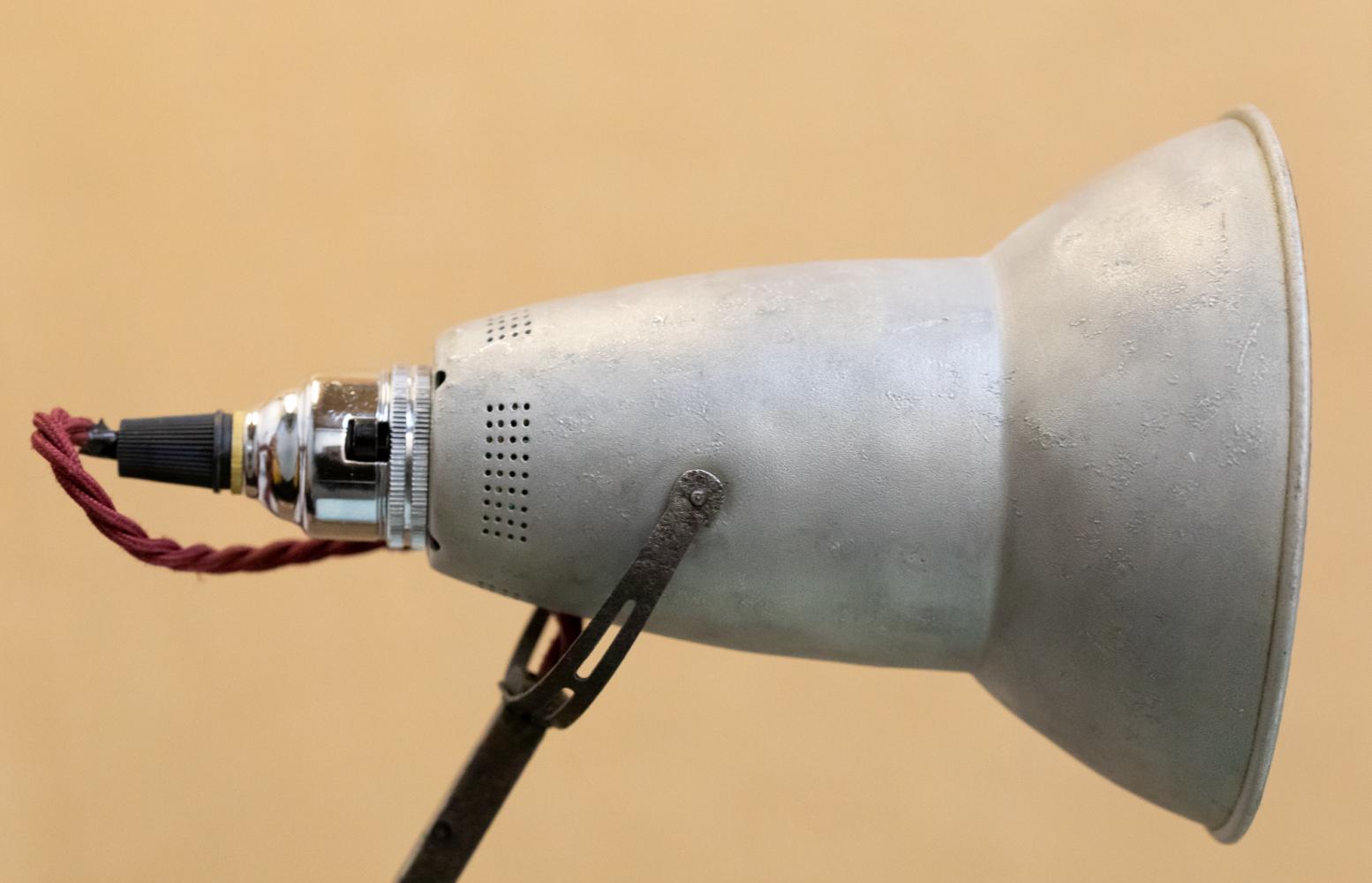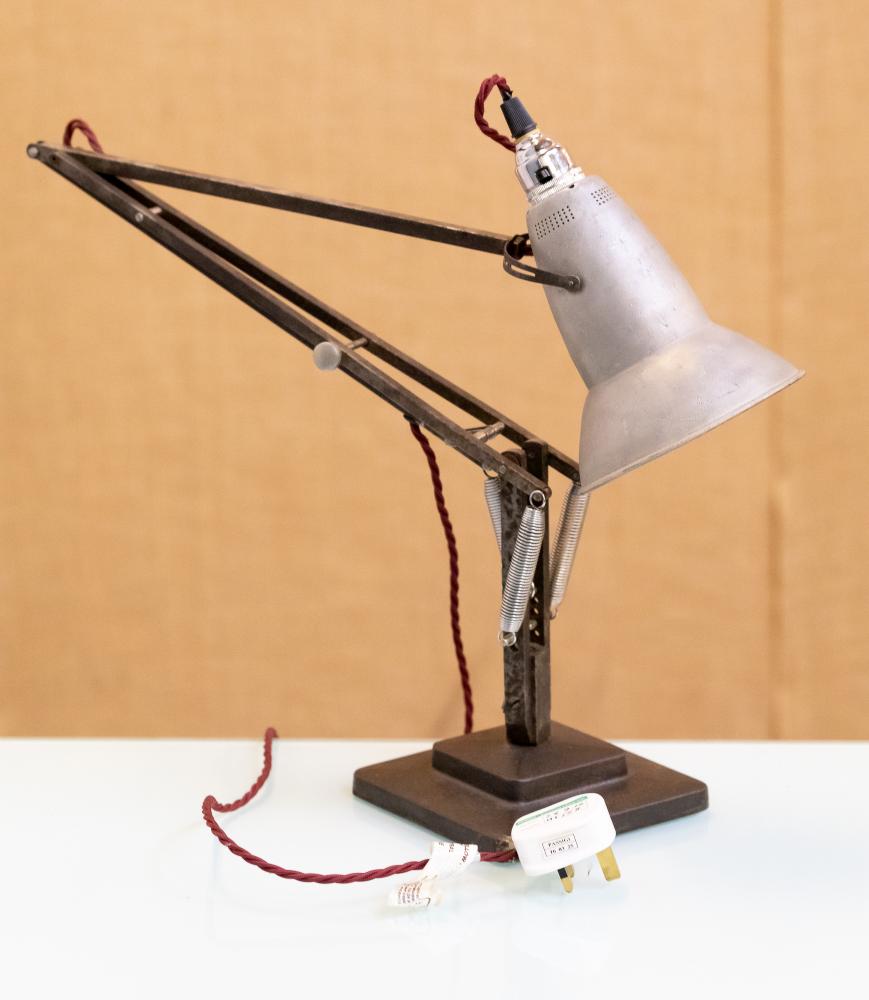 A stunning early example of a Herbert Terry & Sons 1227 anglepoise lamp in the original finish. The early model features the aluminium shade with drilled holes to the back together with adjustable spring bar positioning. Cleaned, rewired and PAT tested the lamp is in its original as found condition and patina.