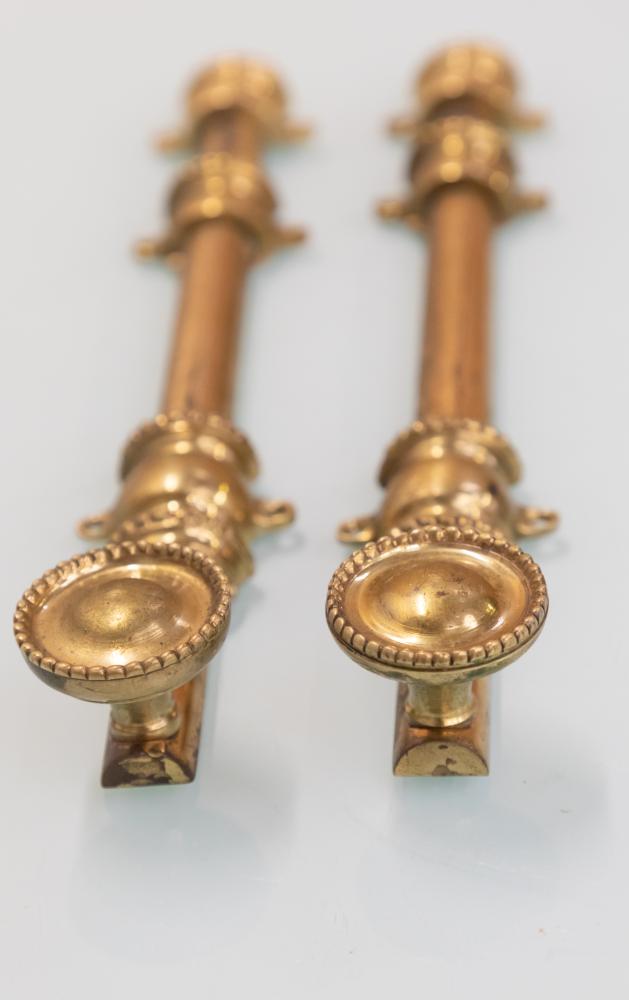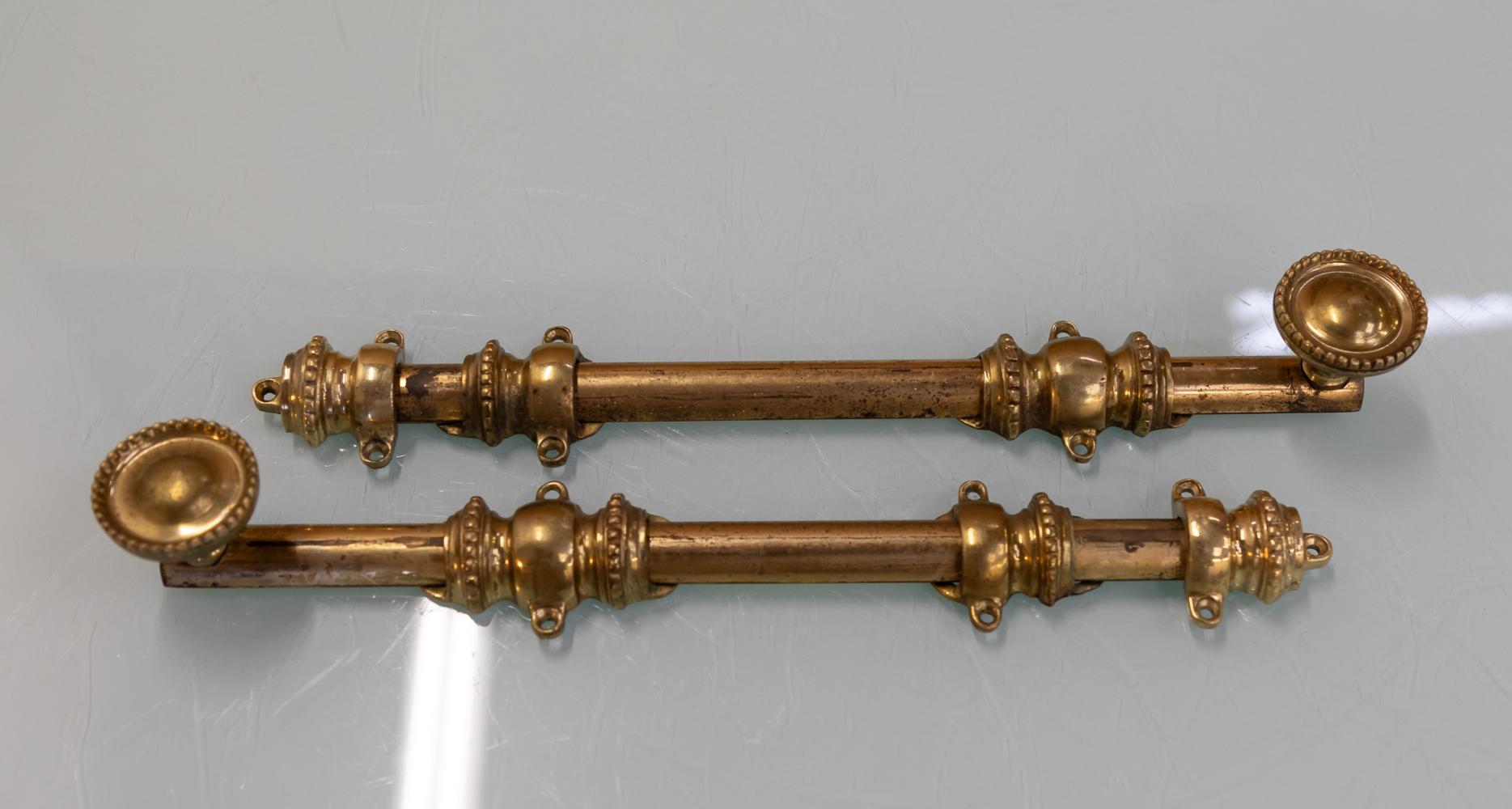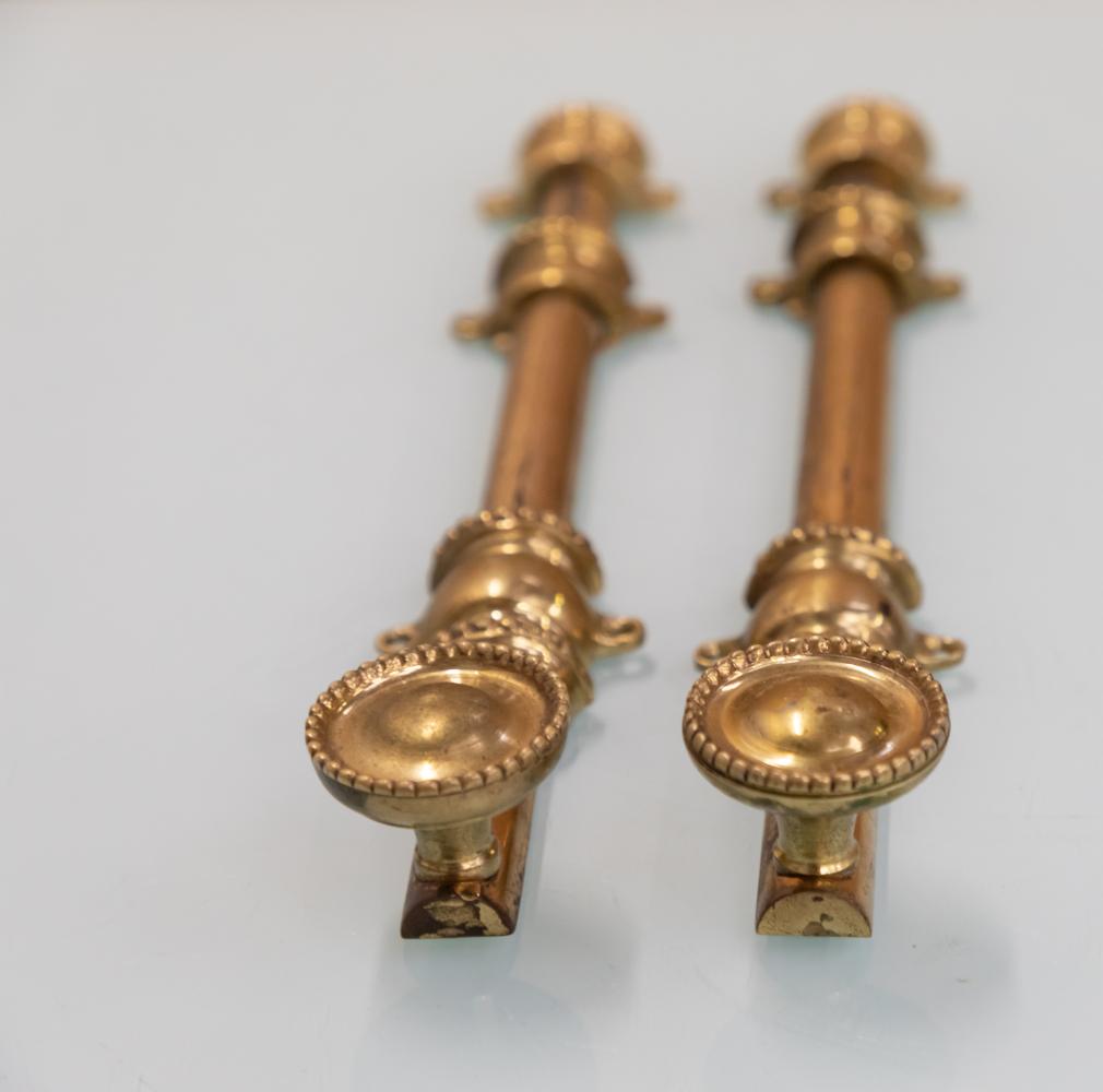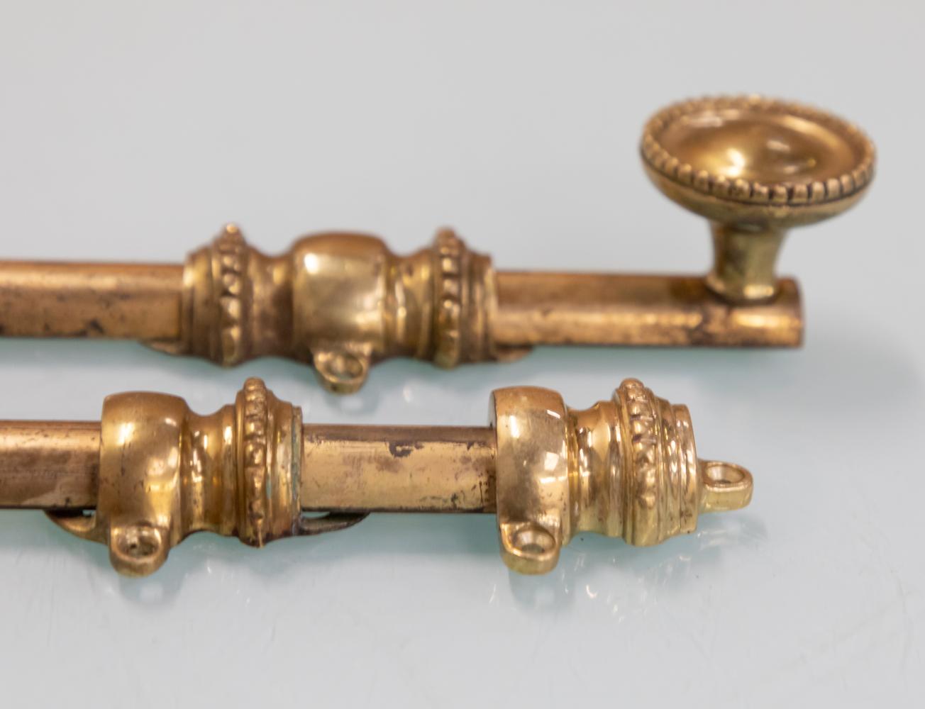 A stunning pair of 19th century gilt brass door bolts. Most defiantly of country house proportions and quality the cast brass bolts retain much of their original gilding.