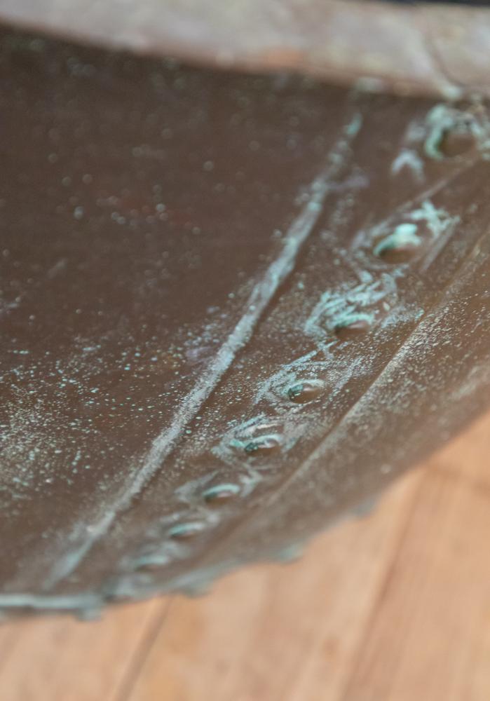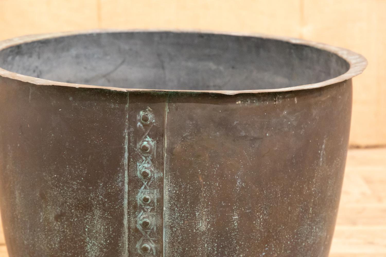 A monumental riveted copper copper that would make a wonderful log bin, planter or garden feature. With a fantastic colour and patina.