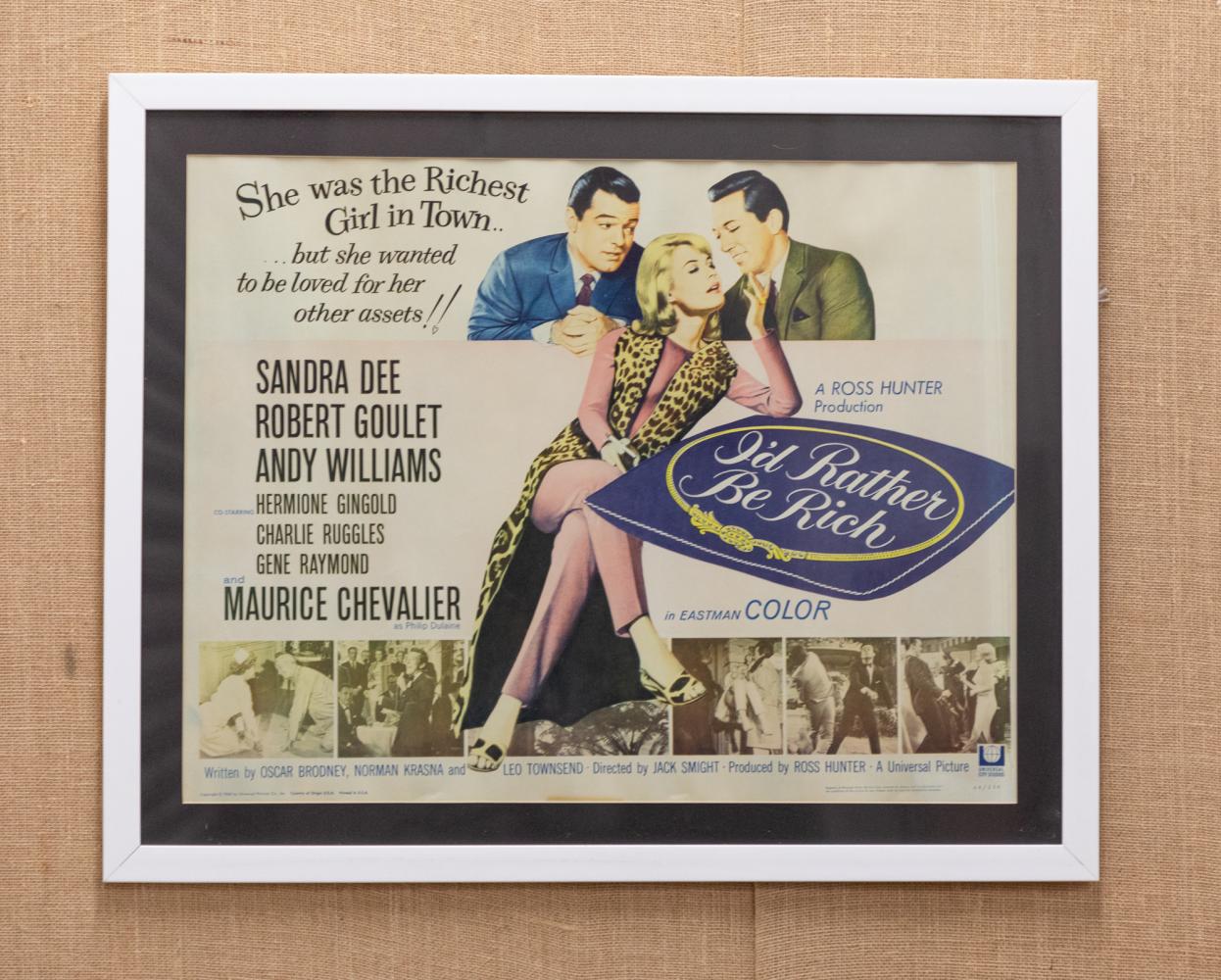 A fabulous mid century original film poster framed in a simple white frame.