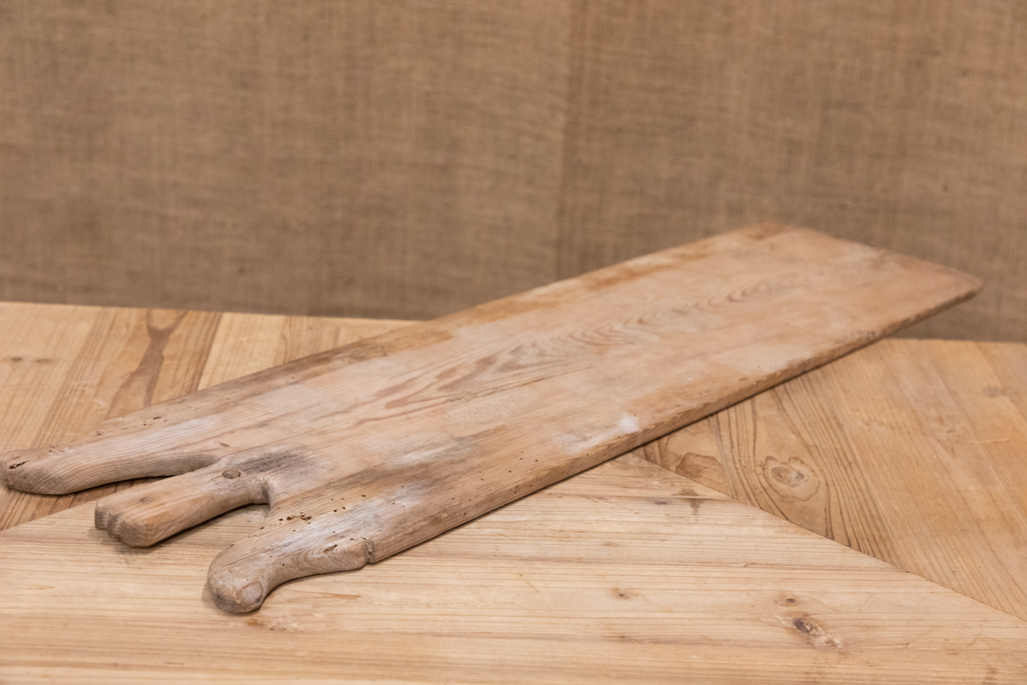 A lovely late 19th century Spanish bakers bread board. A fantastic length ideal for large platters and sharing dishes. In very good condition with a fab patina, a lovely worn look and washed out colour. Old worm holes treated.
