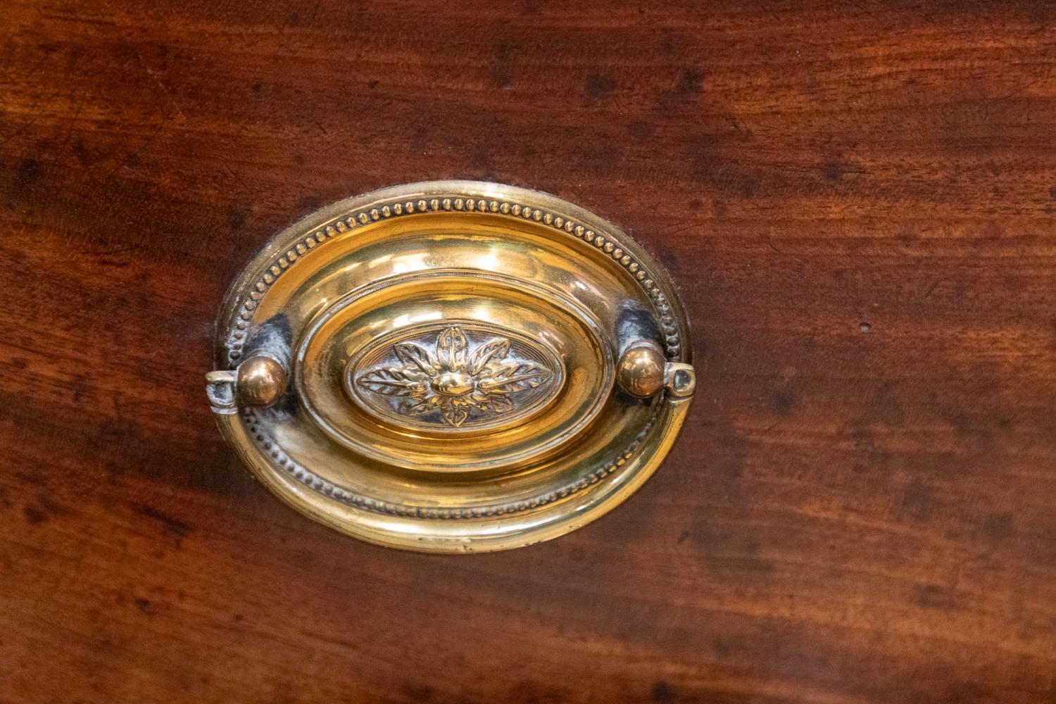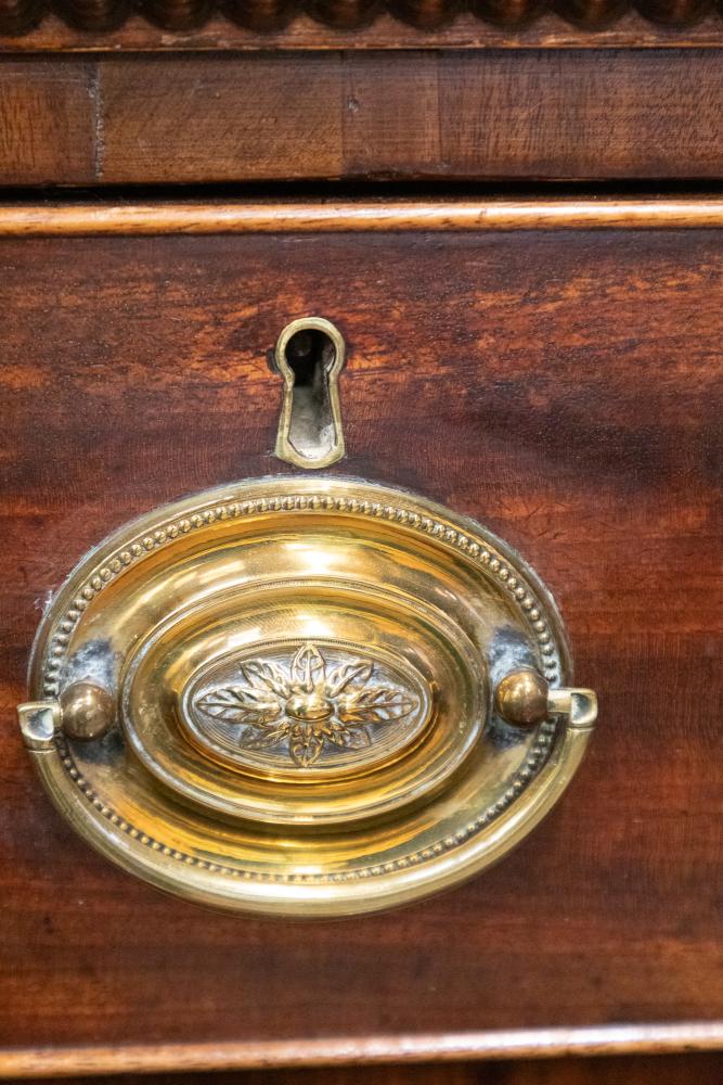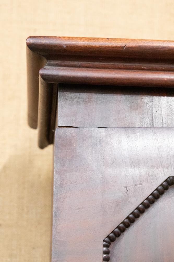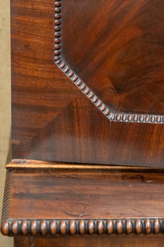A beautiful early to mid 19th century mahogany press cupboard comprising of a cupboard top with twin doors that reveal a shelved interior. The cupboard sits above a chest of drawers with two short sitting above three long graduating drawers. With a lovely bobbin turned trim to the panel doors and to the edge of the chest.