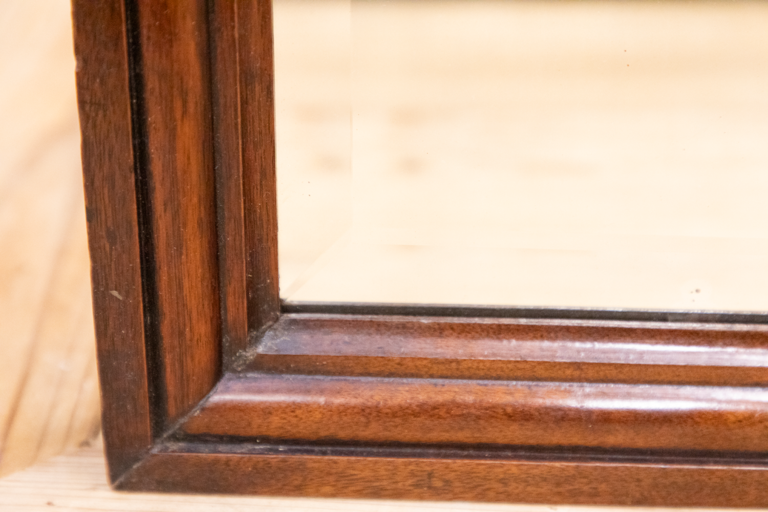 A late 19th century mahogany wall mirror with a wonderful bevelled mirror plate.