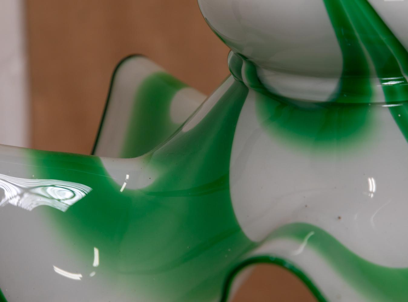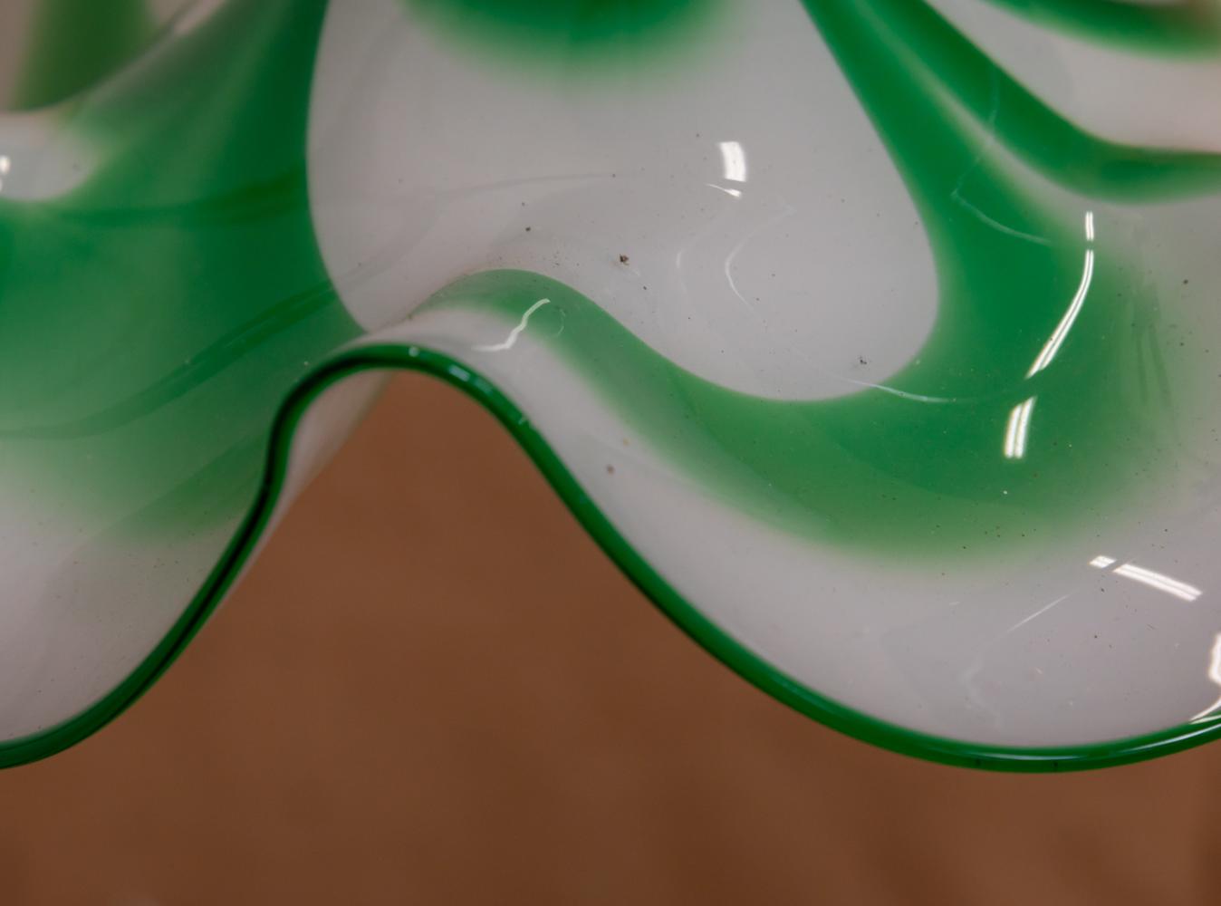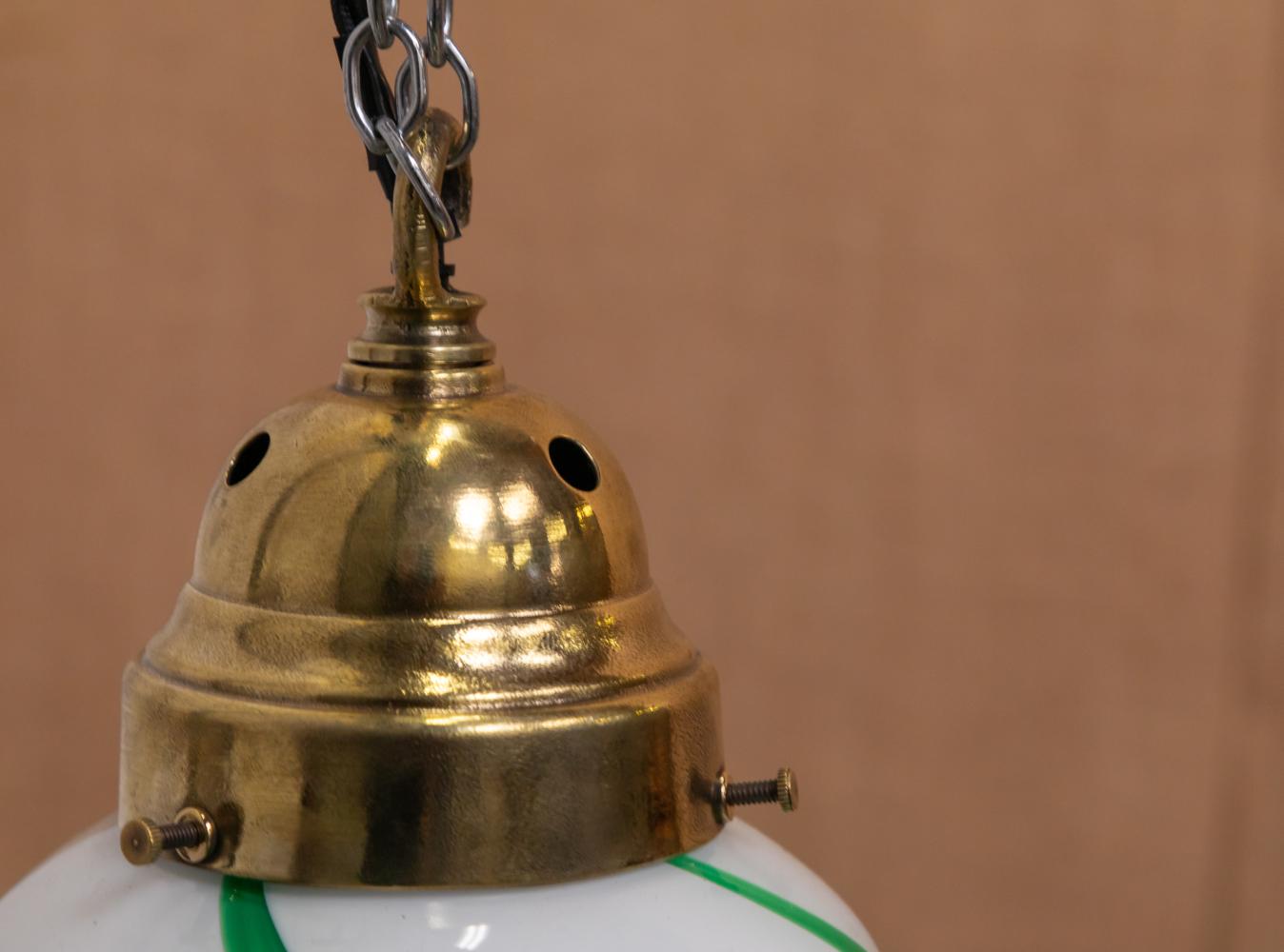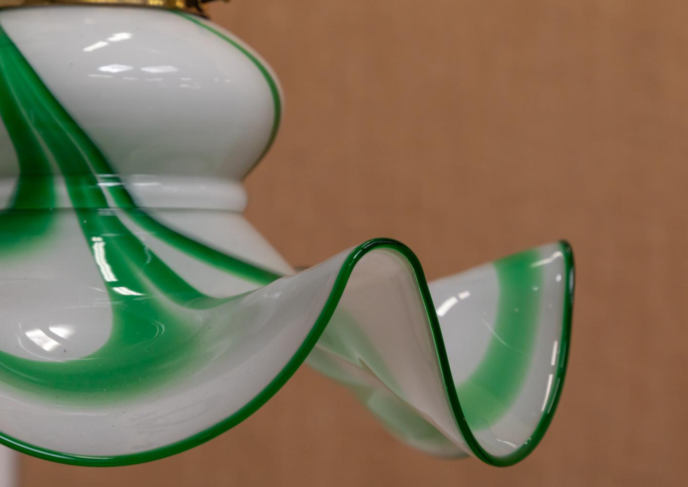 A stunning early to mid century green and opaline glass pendant lamp with a wonderful handkerchief shape. Complete with the original brass gallery, fully rewired and PAT tested.