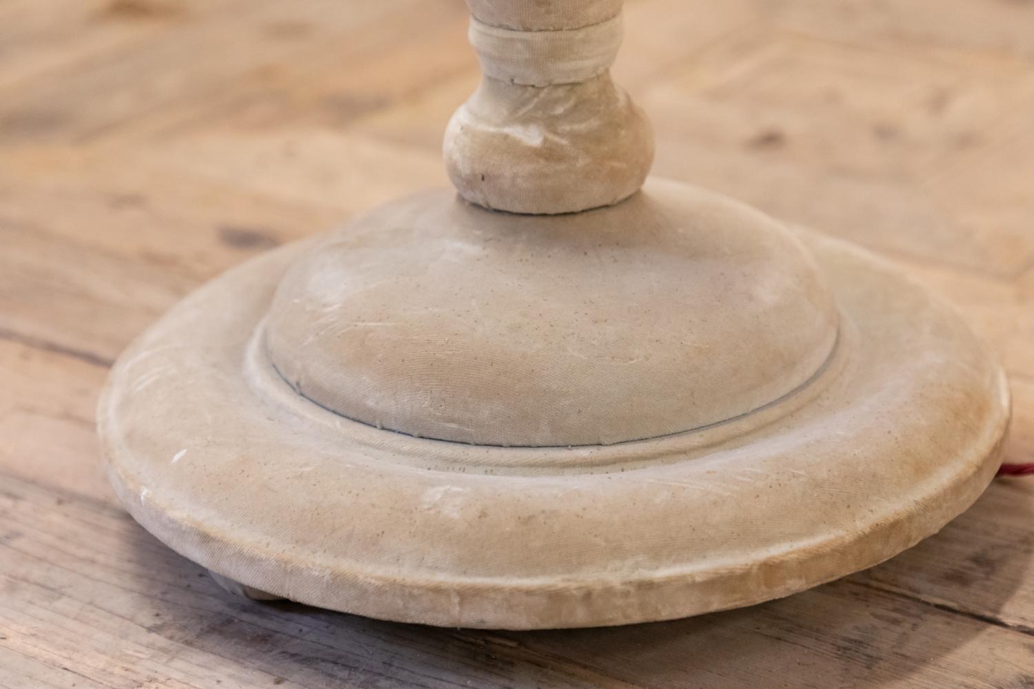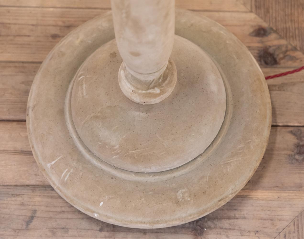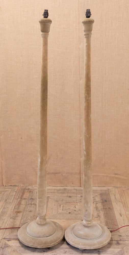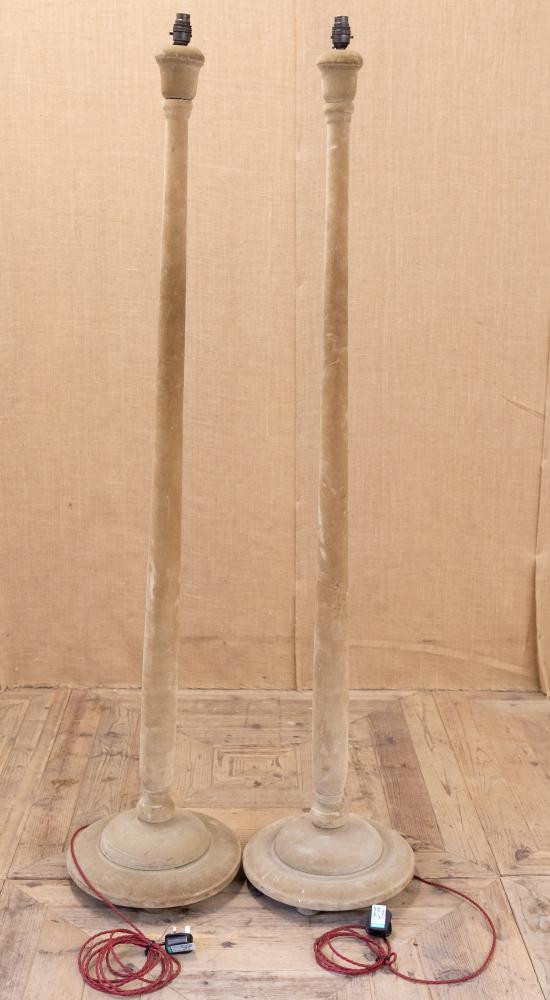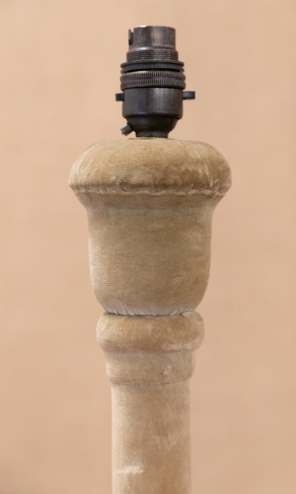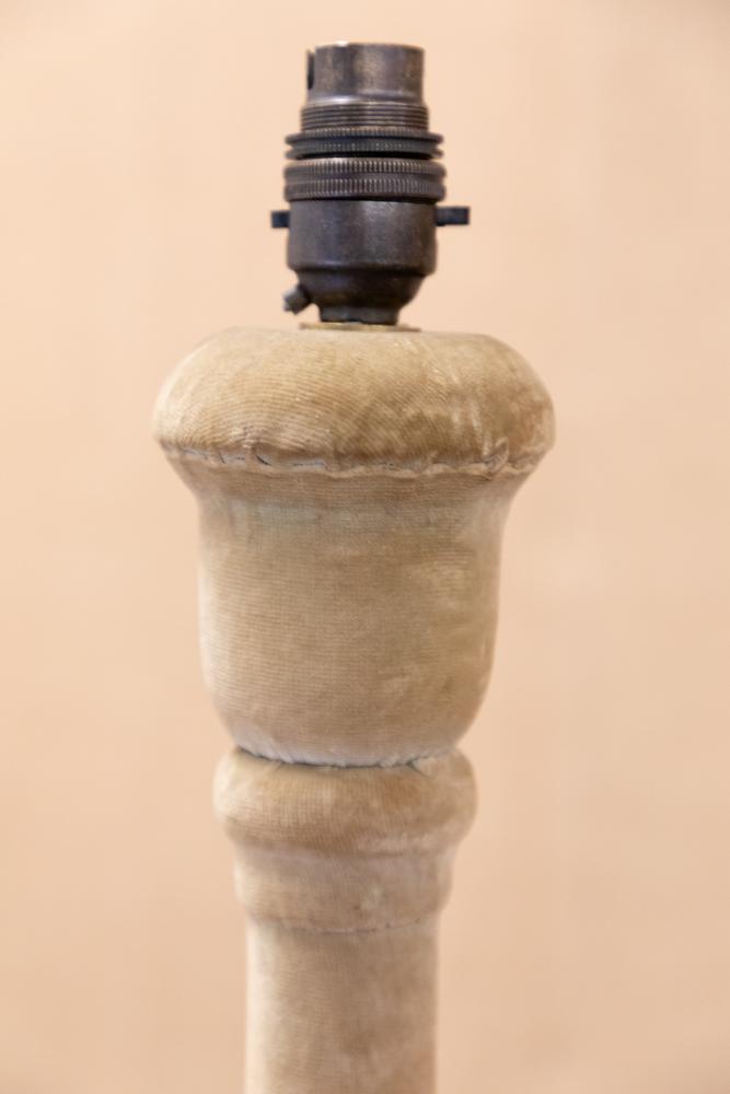 A fantastic pair of early 20th century velvet covered standard or floor lamps. Constructed of pine and covered entirely in velvet that is a lovely sand of fawn colour. Similar to those by Lenygon and Morant.