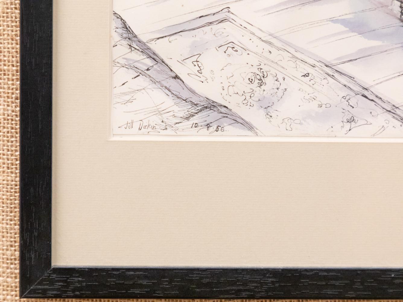 A lovely pen and ink interior scene sketch with a lovely indigo wash.