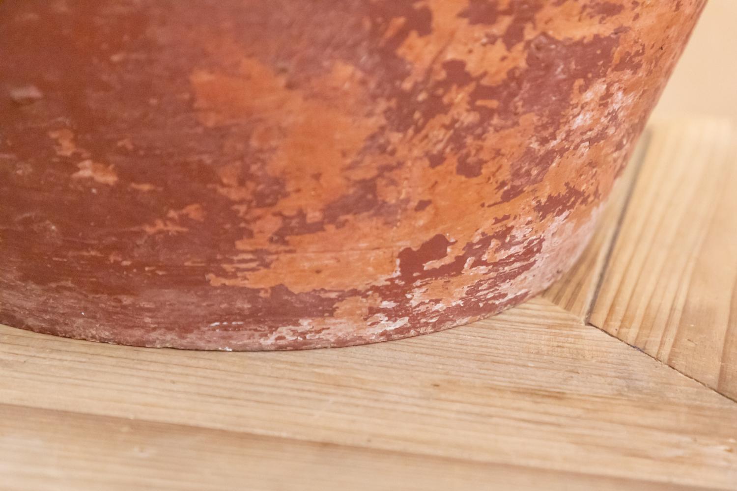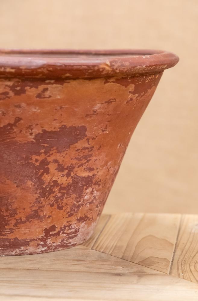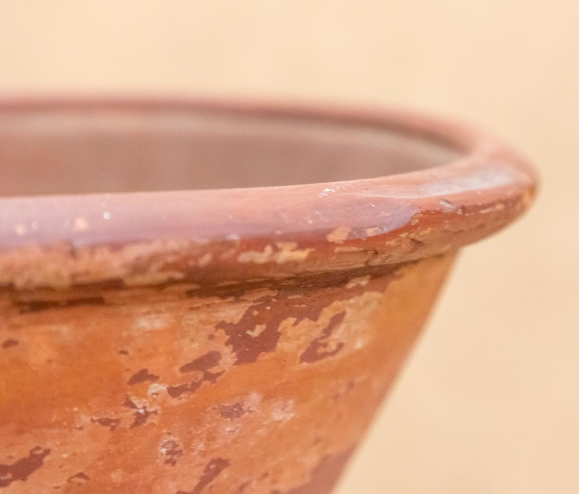 A lovely un-glazed red terracotta dairy bowl or pancheon of large proportions.