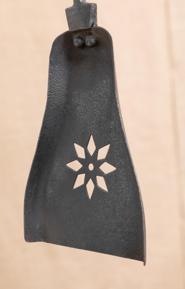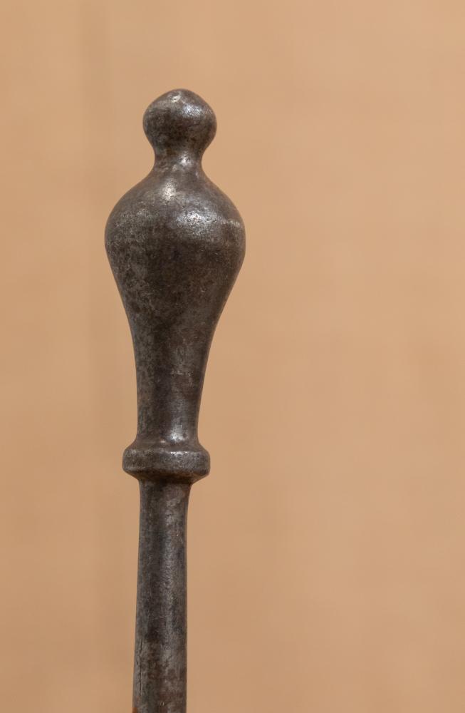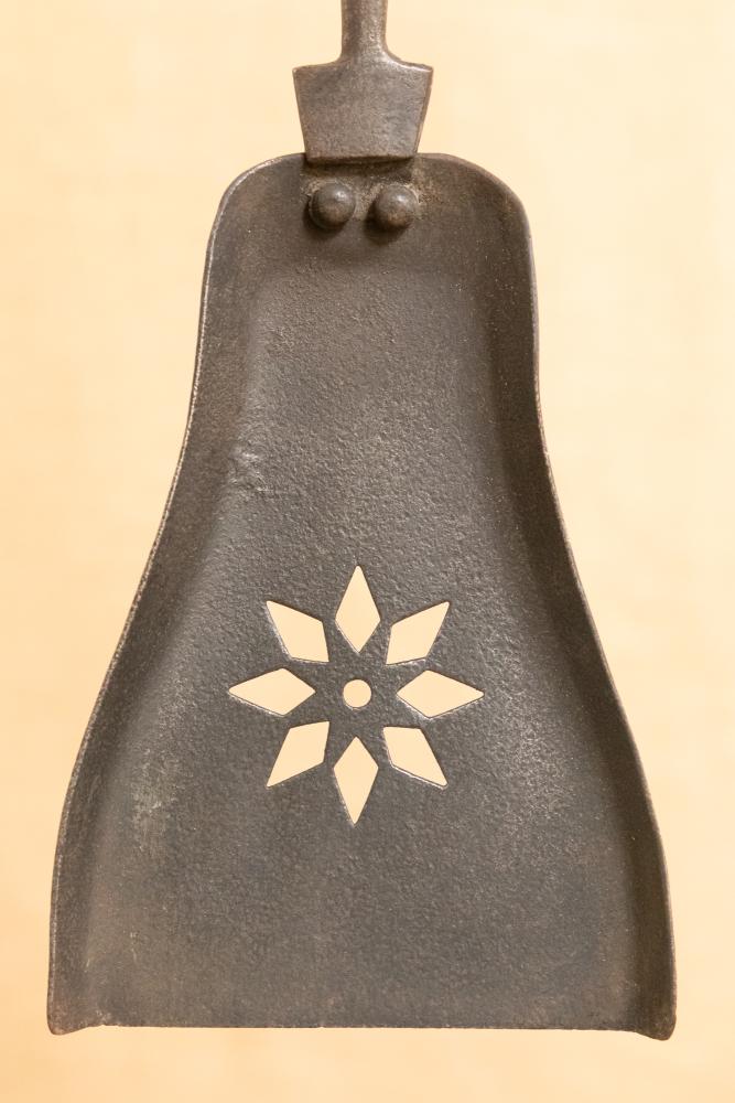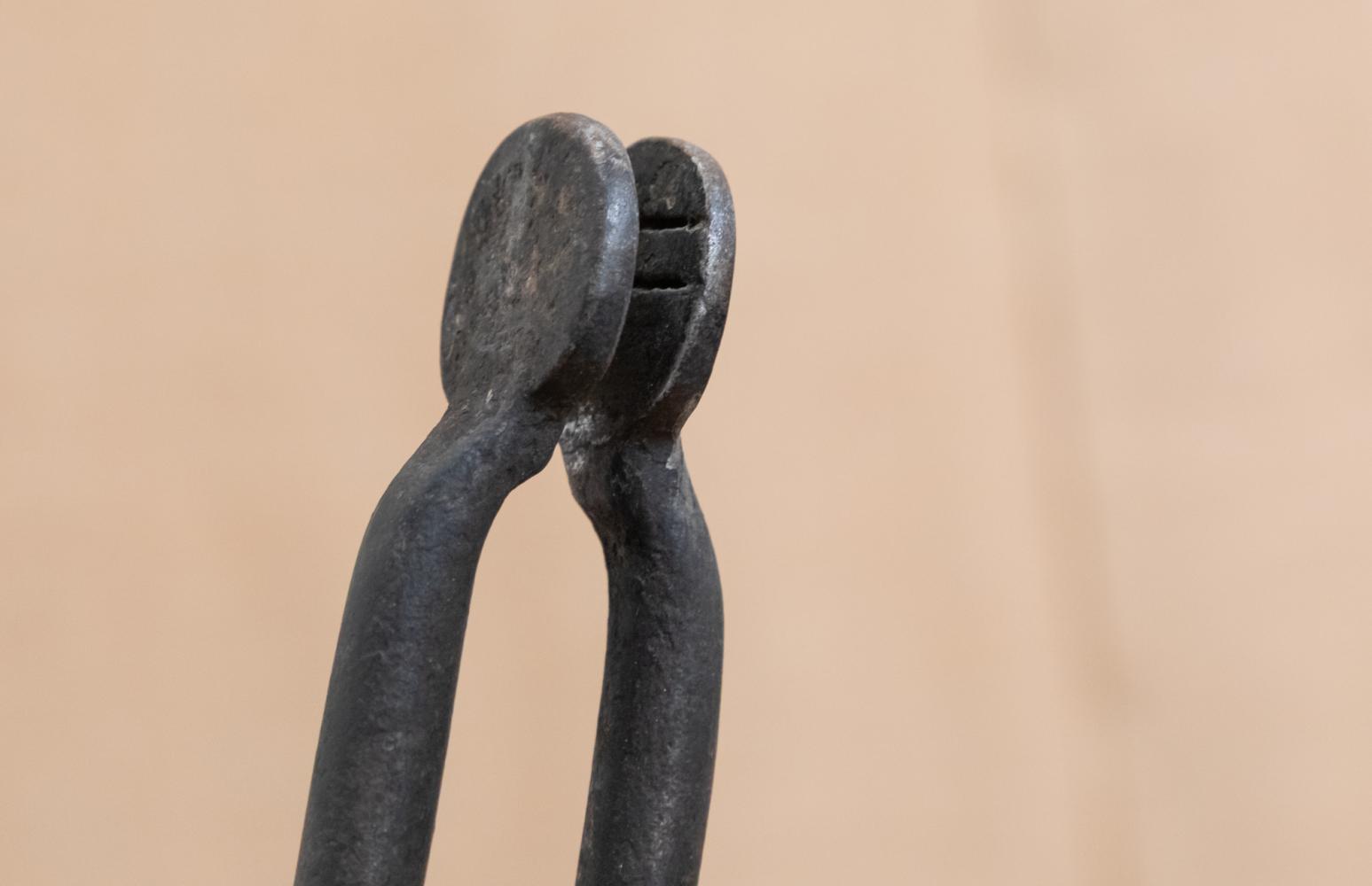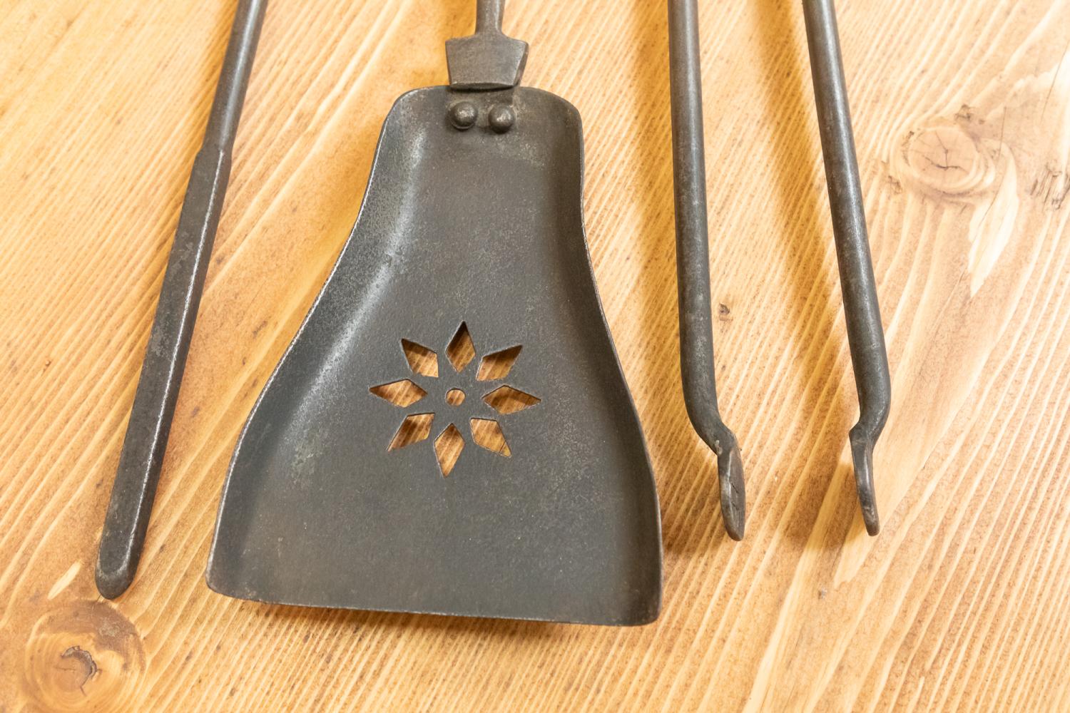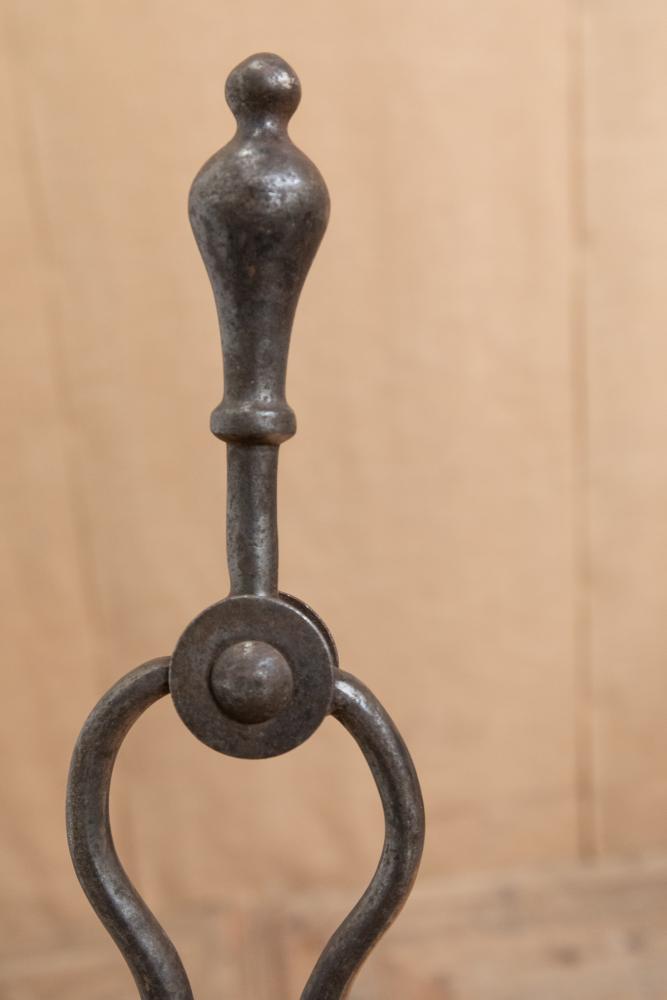 A set of three 19th century steel fire irons comprising poker, tongs and shovel.