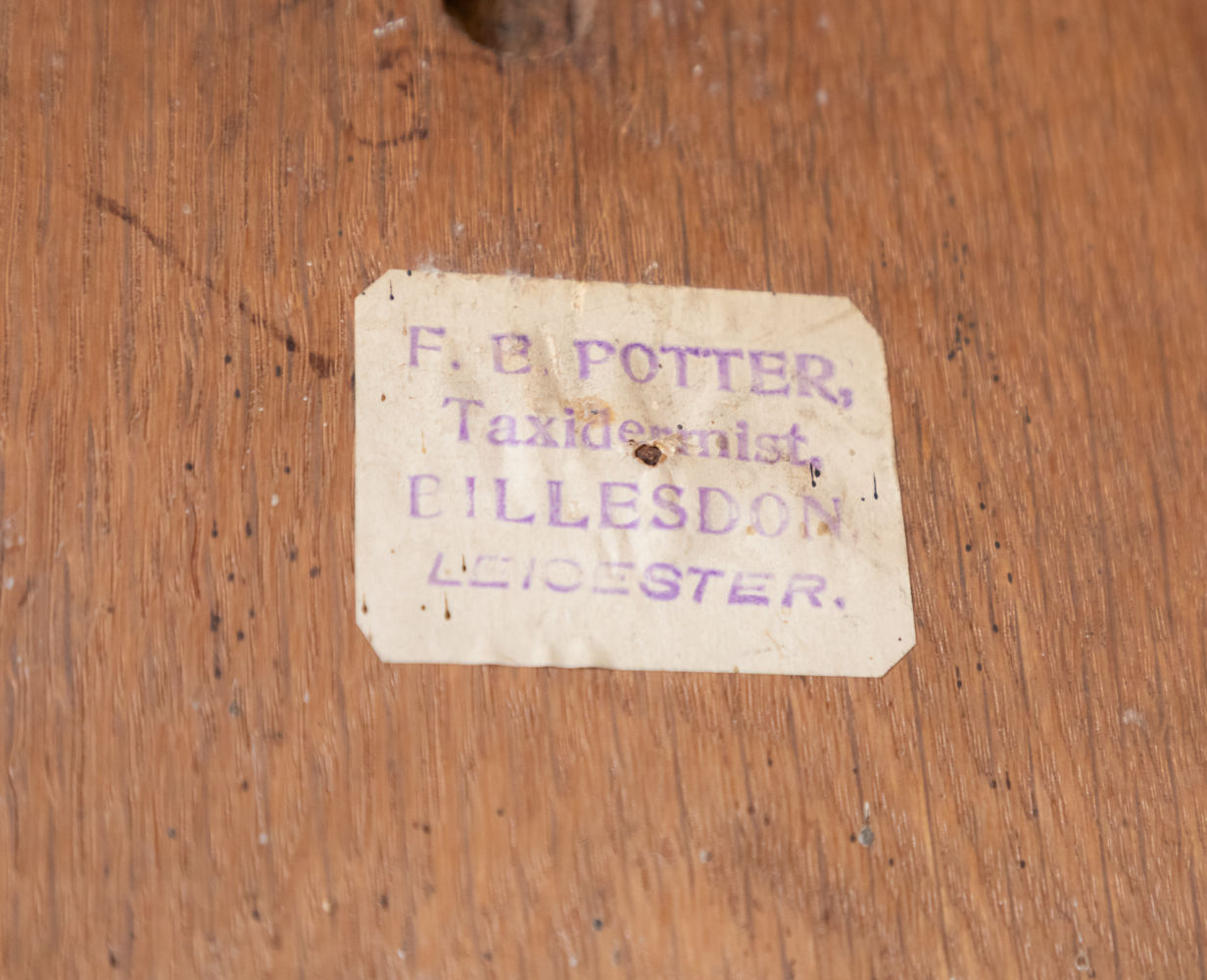 A fantastic late 19th century taxidermy fox mask on a golden oak shield mount. Mounted by F E Potter of Leicestershire.