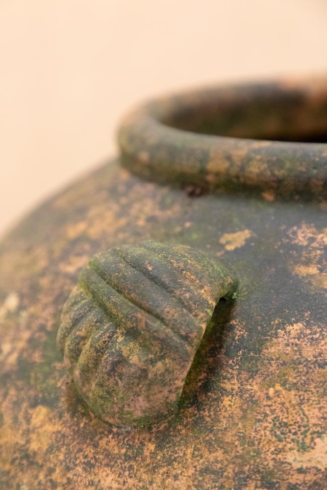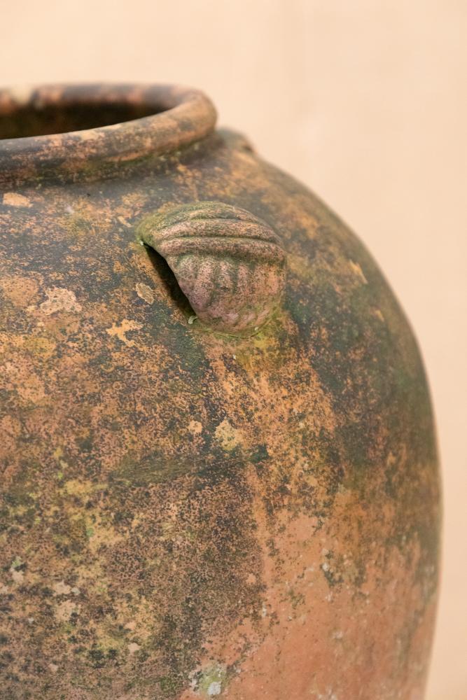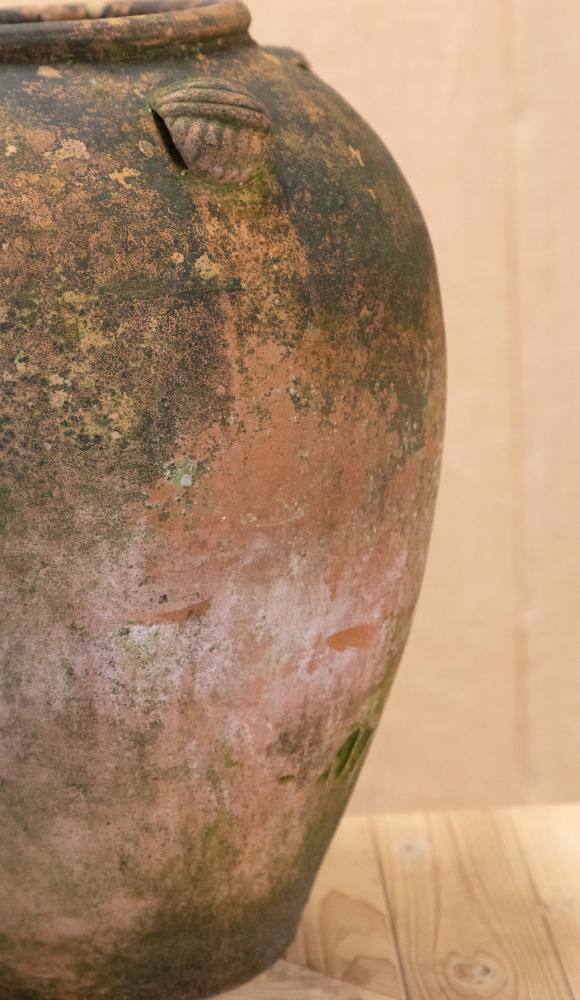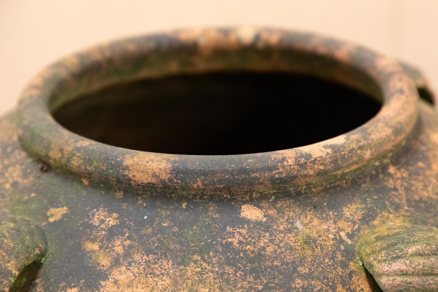 A wonderful Edwardian weathered terracotta garden urn or jar.