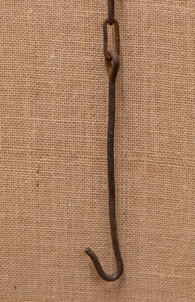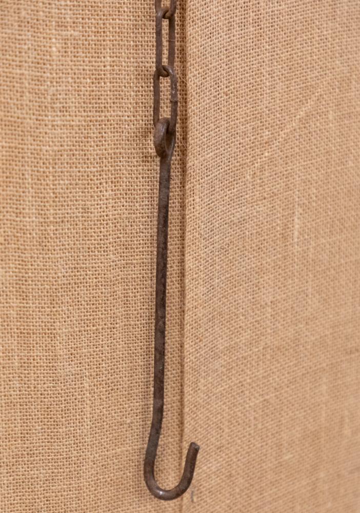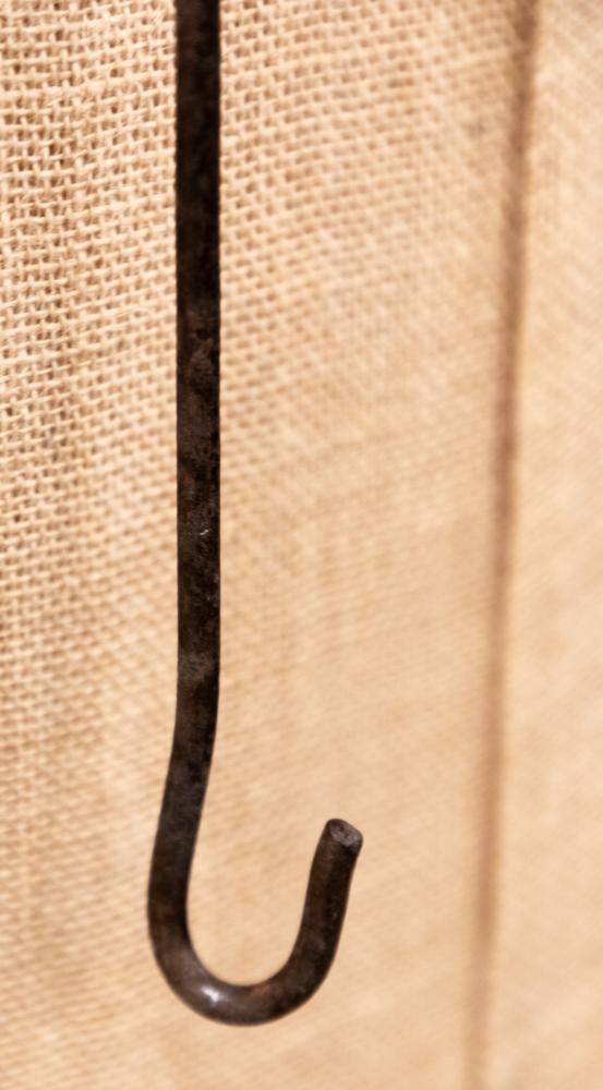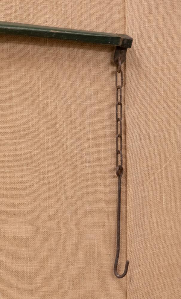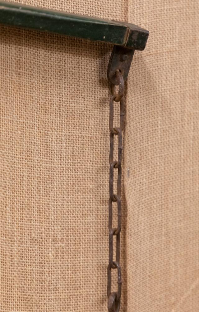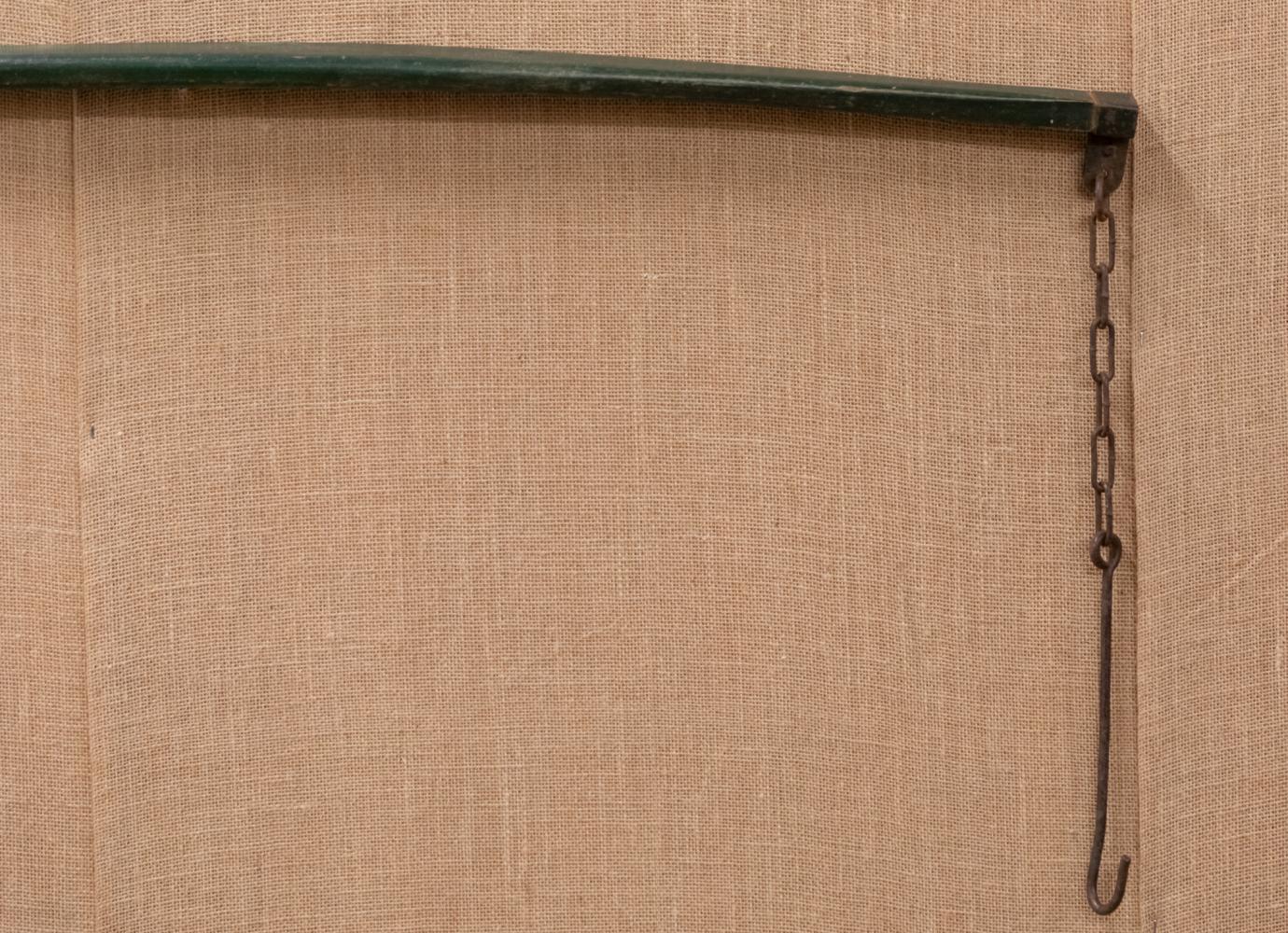 A fantastic early 19th century wooden yoke or carrier in the original green paint and retaining the original wrought iron hooks. Most recently used as a utensil hanger in a country kitchen.